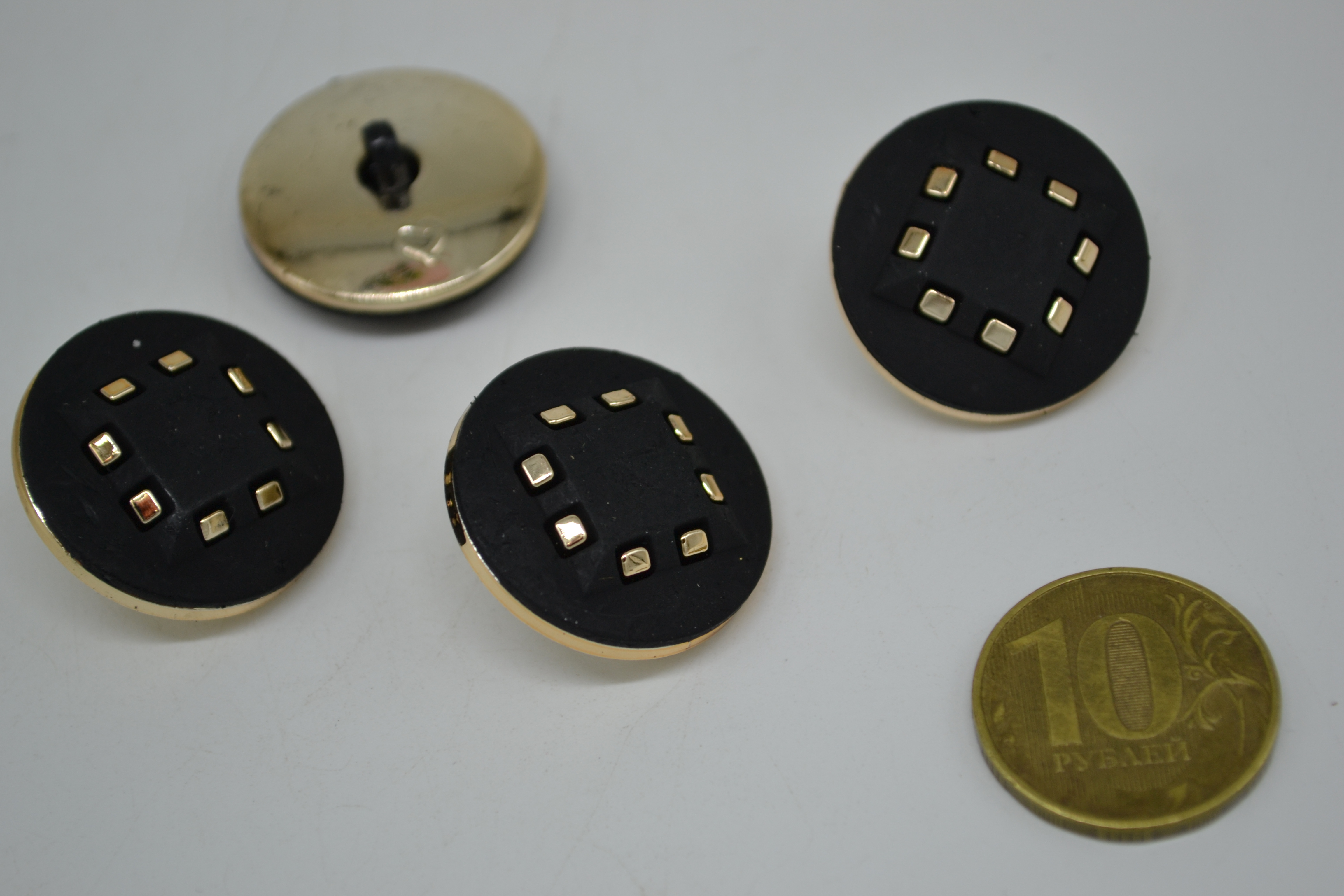 Пуговица 25 мм чёрная матовая на золоте 10 шт