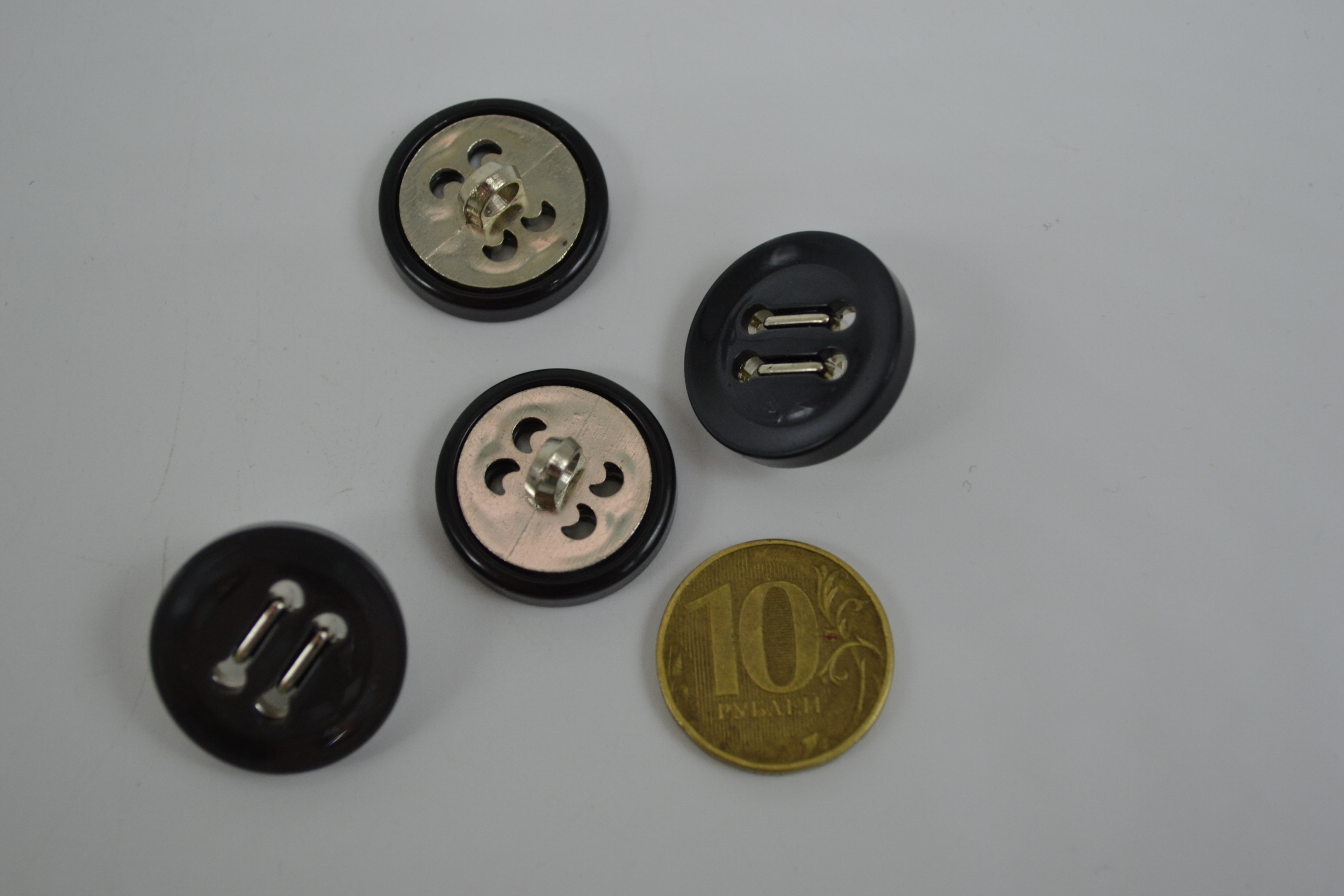 Пуговица 28 мм на ножке чёрная с серебром 10 шт