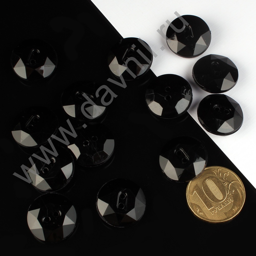 Пуговицы-стразы акрил "Круг" 20 мм 200 шт чёрные
