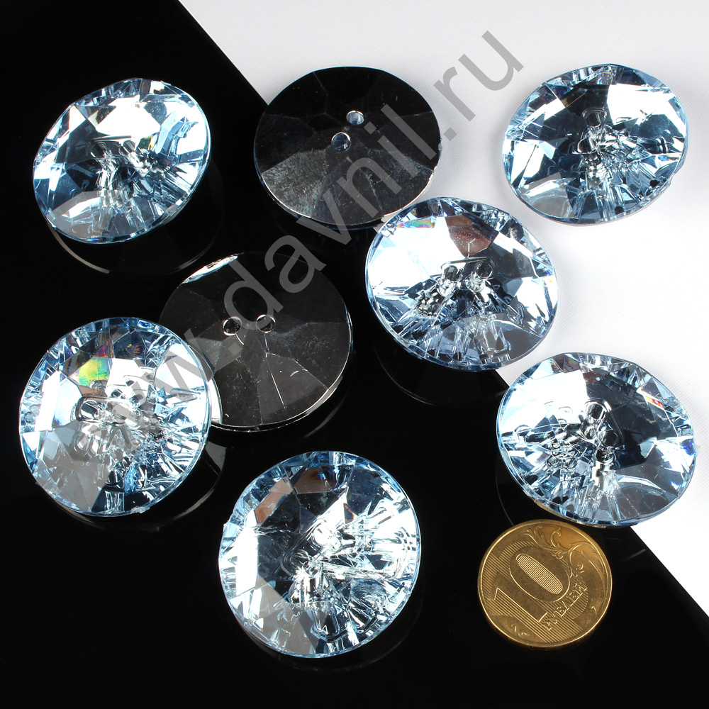 Пуговицы-стразы акрил "Круг" 34 мм 50 шт голубые 32