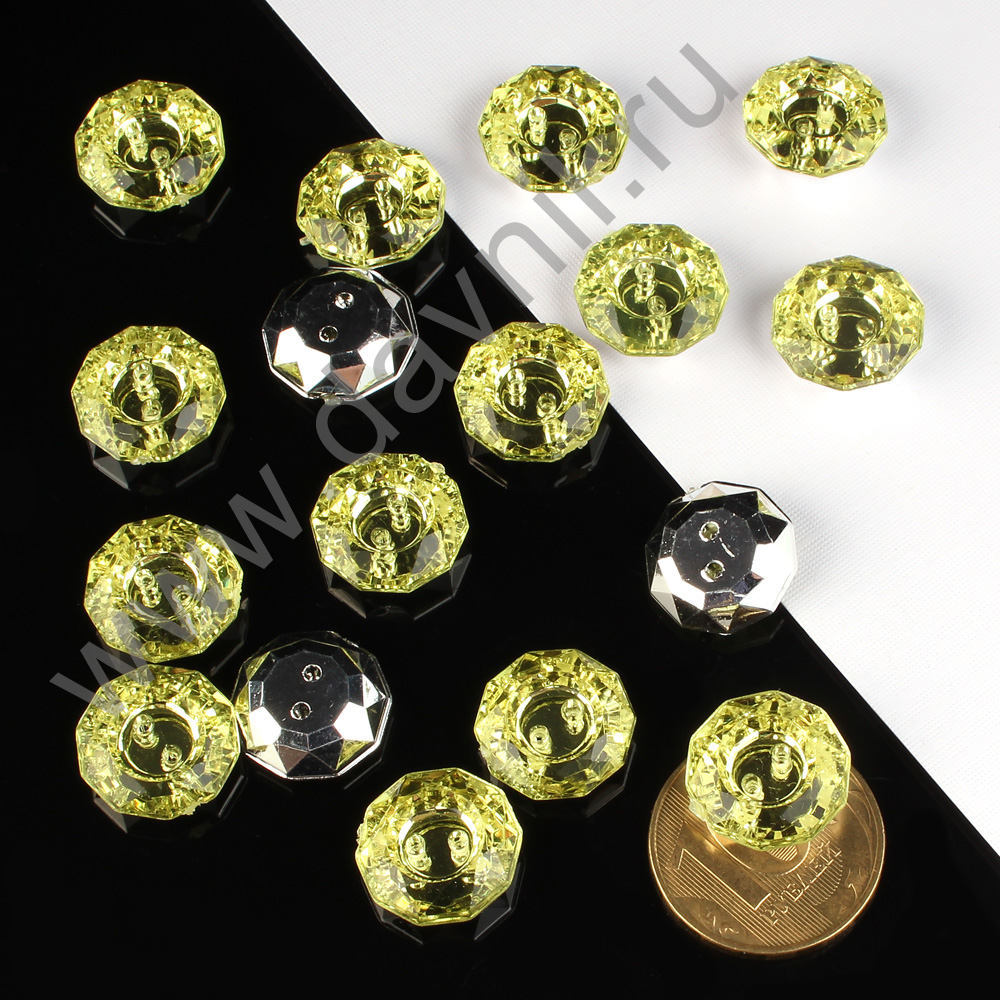 Пуговицы-стразы акрил "Круг" 15 мм 20 шт жёлтые