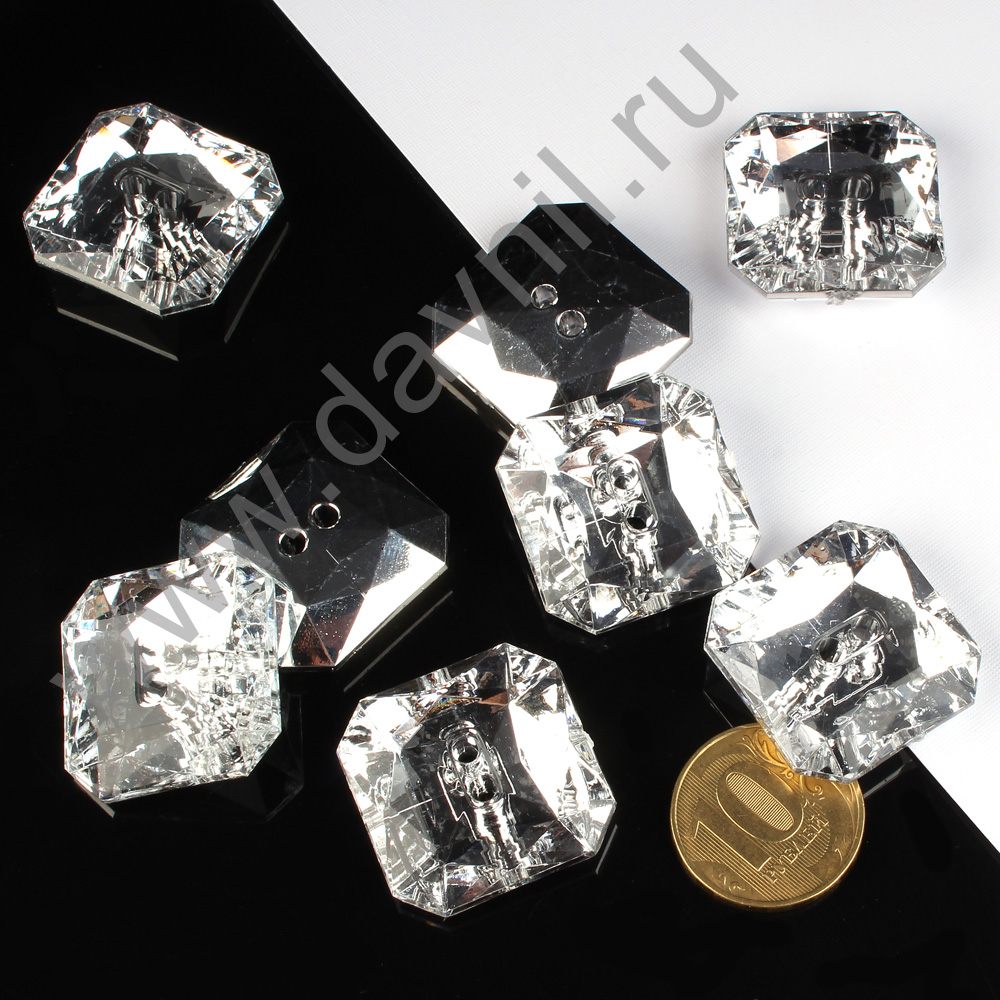 Пуговицы-стразы акрил "Квадрат" 27 мм 100 шт серебряные