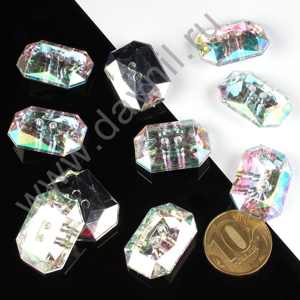 Пуговицы-стразы акрил "Многоугольник" 21*15 мм 200 шт белые АВ
