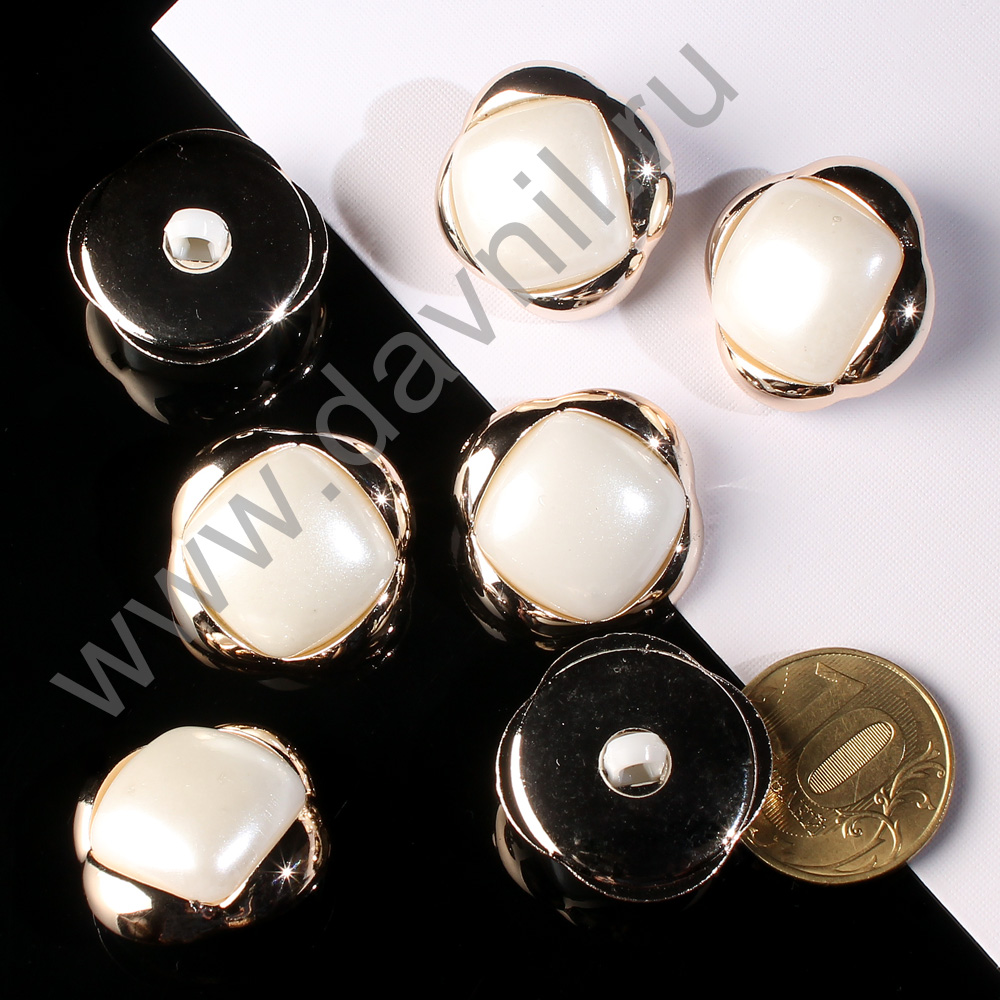 Пуговица 25 мм на ножке белый жемчуг прямоугольник в золотой оправе 200 шт
