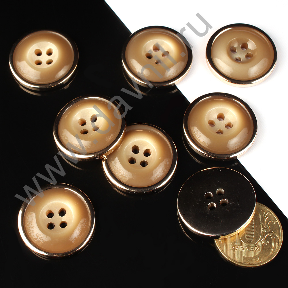 Пуговица 25 мм коричневая с золотым кольцом 100 шт