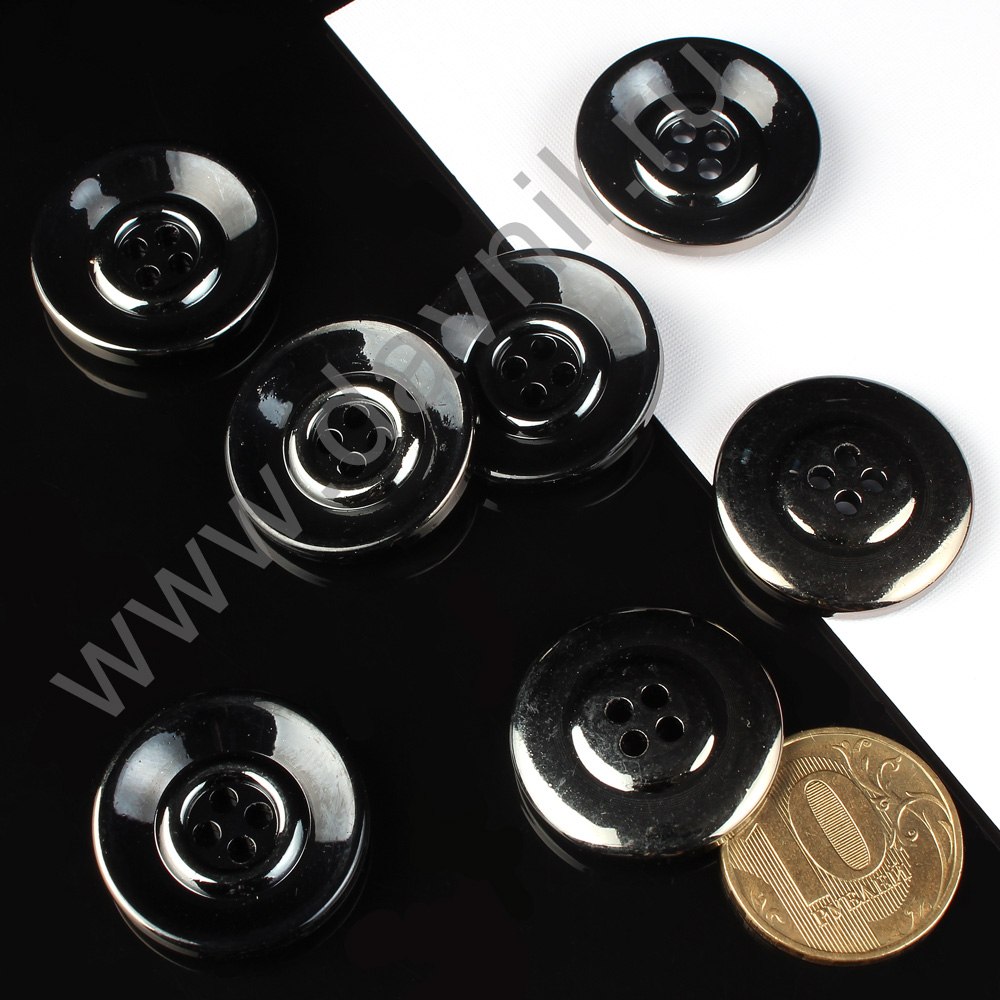 Пуговица 25 мм черная с серебряной окантовкой 100 шт