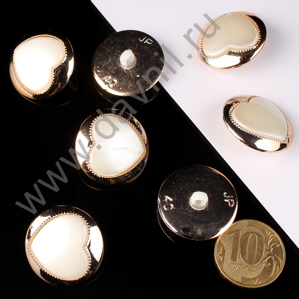 Пуговица 25 мм на ножке сердечко жемчуг в золотой оправе 200 шт