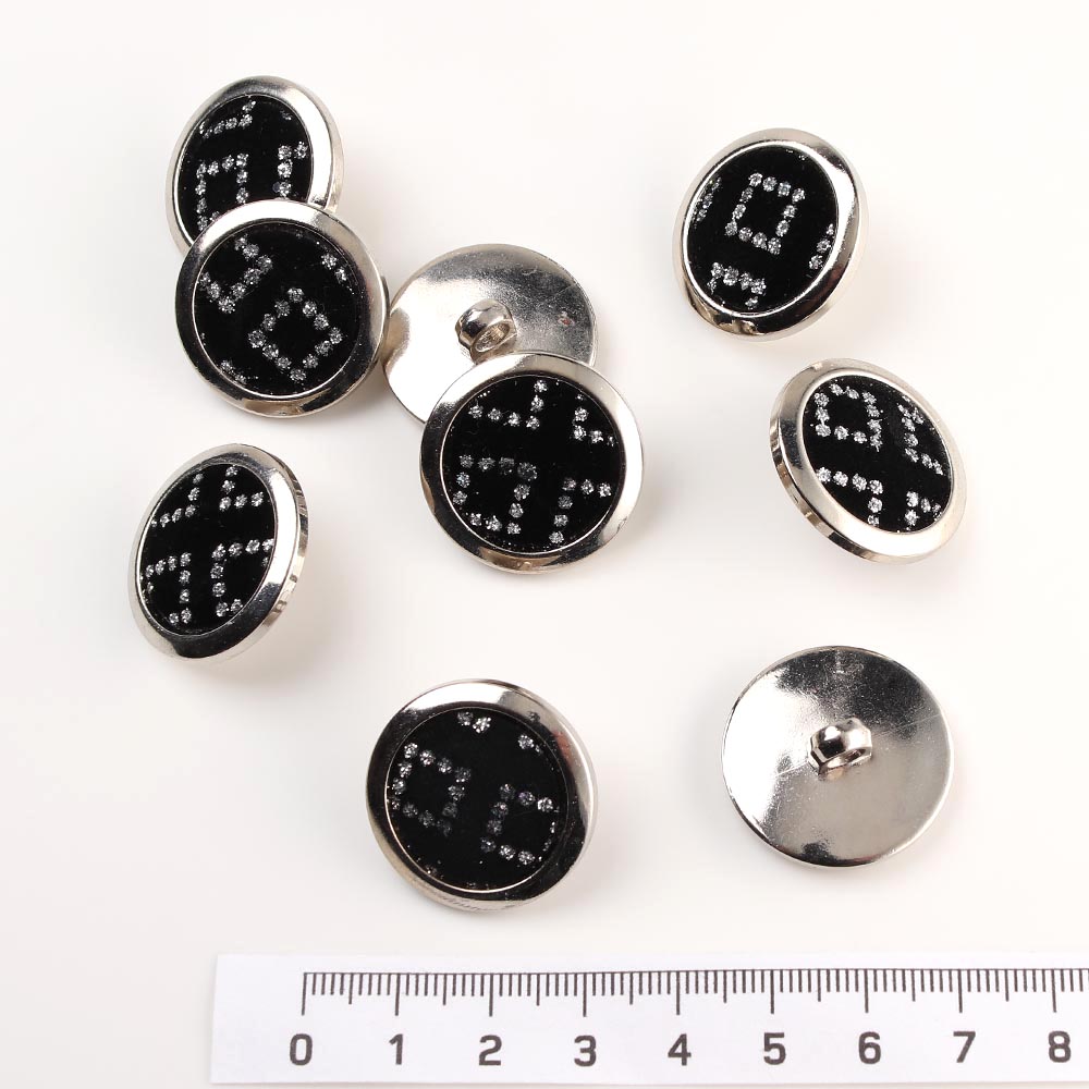 Пуговица 25 мм на ножке чёрный бархат со стразами 200 шт Н94-35