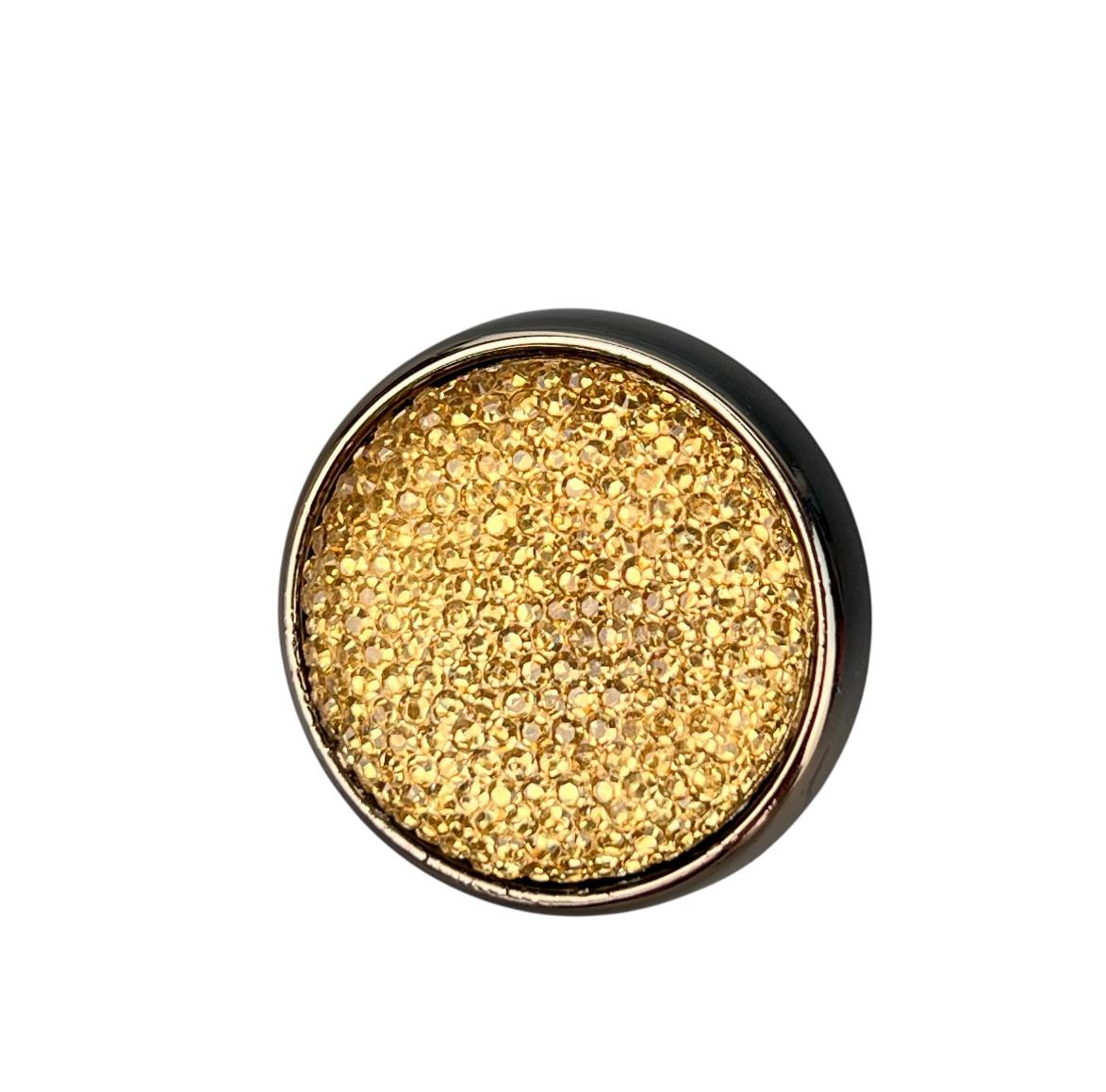 Пуговица 35 мм на ножке золотая страза в тёмном серебре 12 шт
