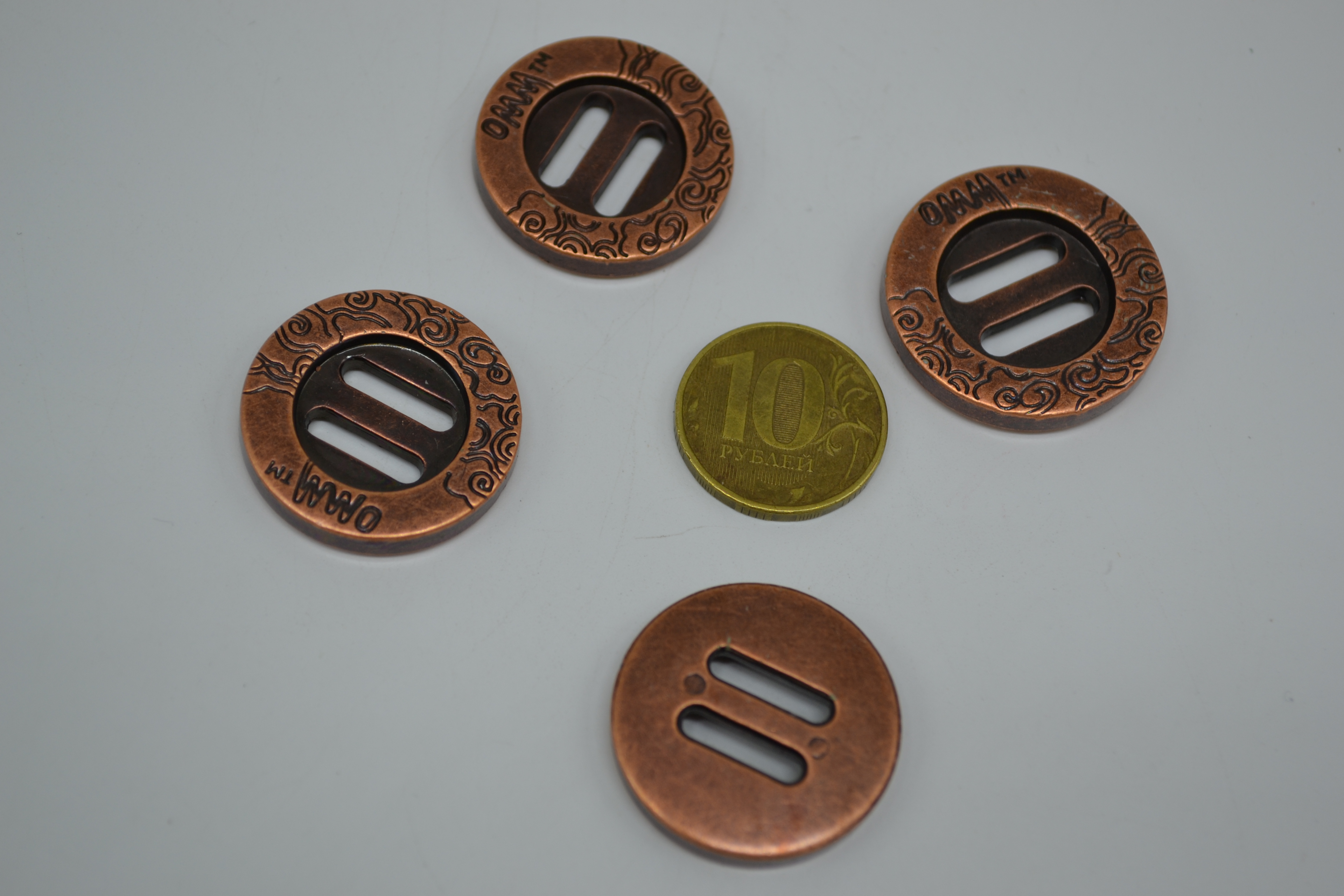 Пуговица 28 мм под металл медь с прямоугольным отверстием 140 шт