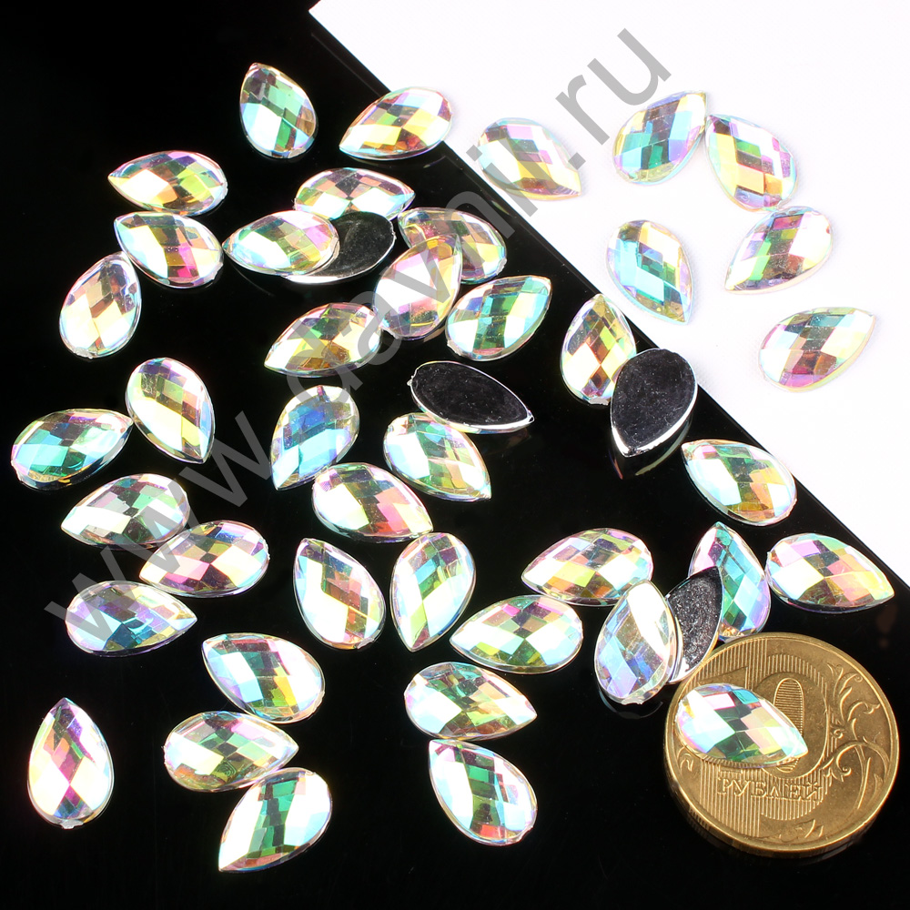 Стразы клеевые акрил "Капля" 8*13 мм 2000 шт белые 17АВ