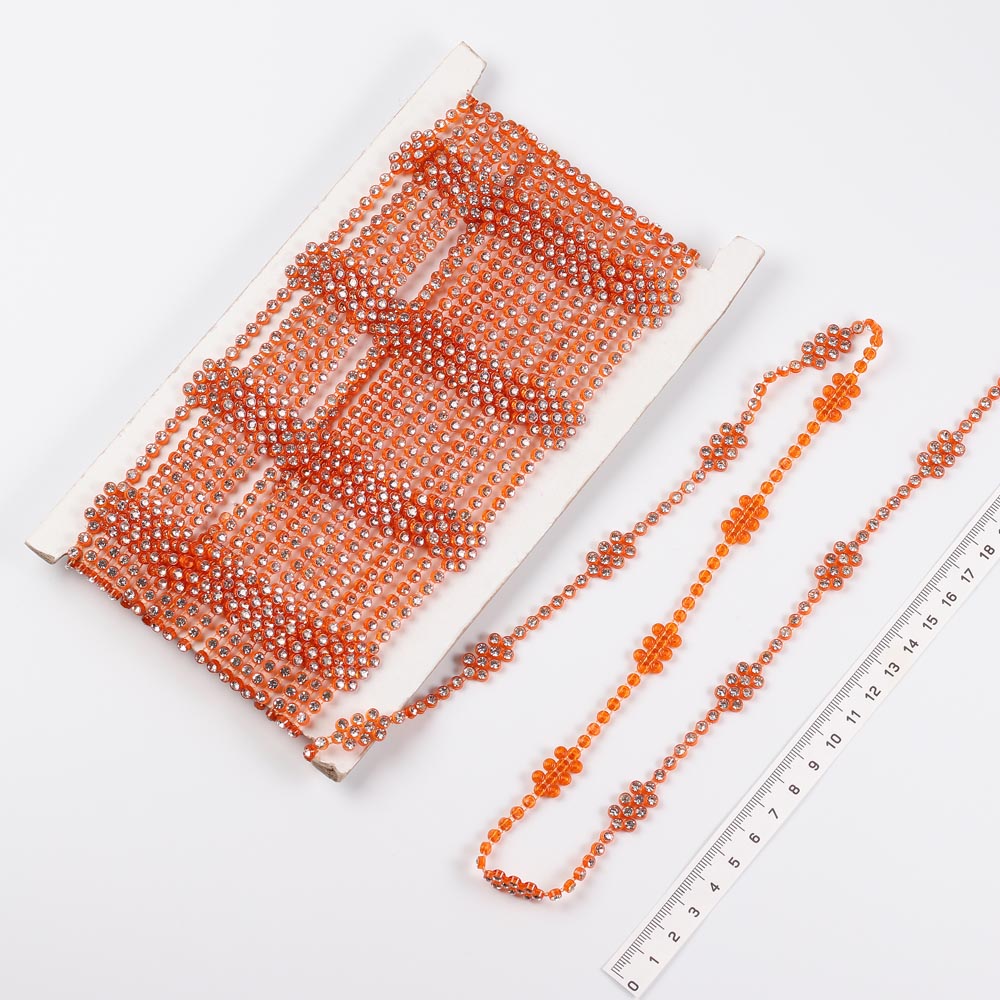 Стразы на нити одинарные с цветочками 10 ярдов терракотовый