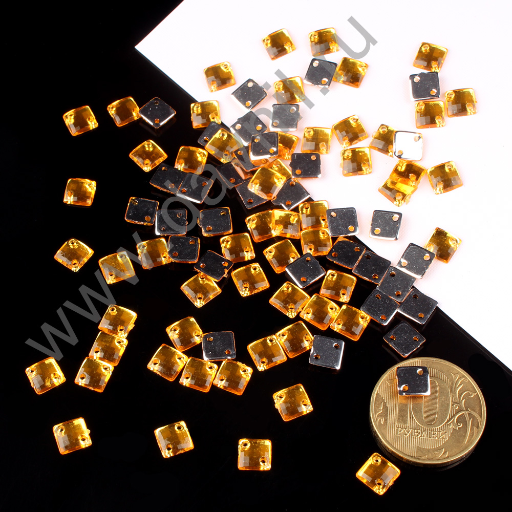 Стразы пришивные акрил "Квадрат" 6 мм 5000 шт яркое золото 20