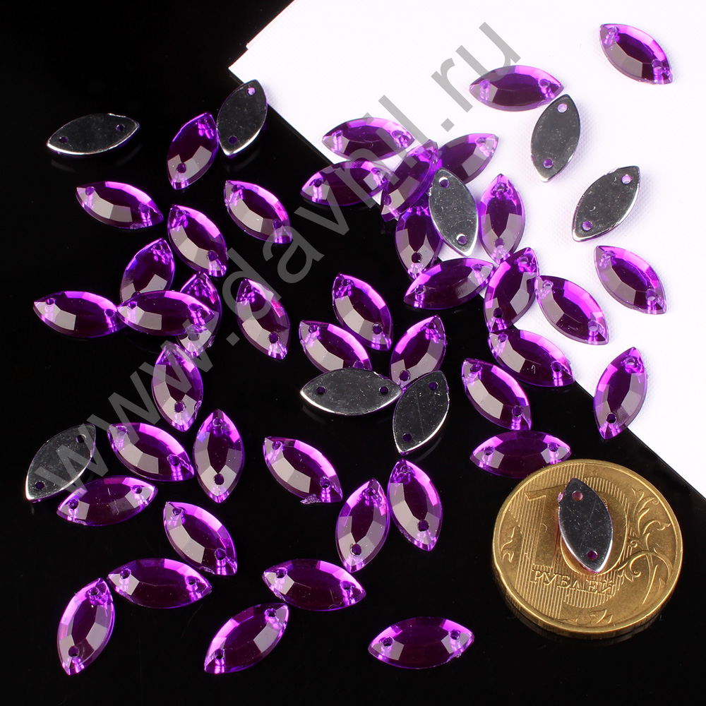 Стразы пришивные акрил "Лодочка" 6*12 мм 2000 шт фиолетовый 4