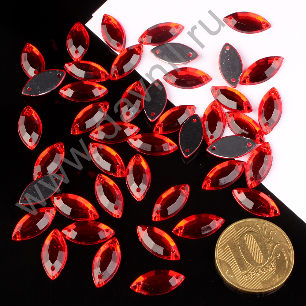 Стразы пришивные акрил "Лодочка" 7*15 мм 2000 шт красный 6
