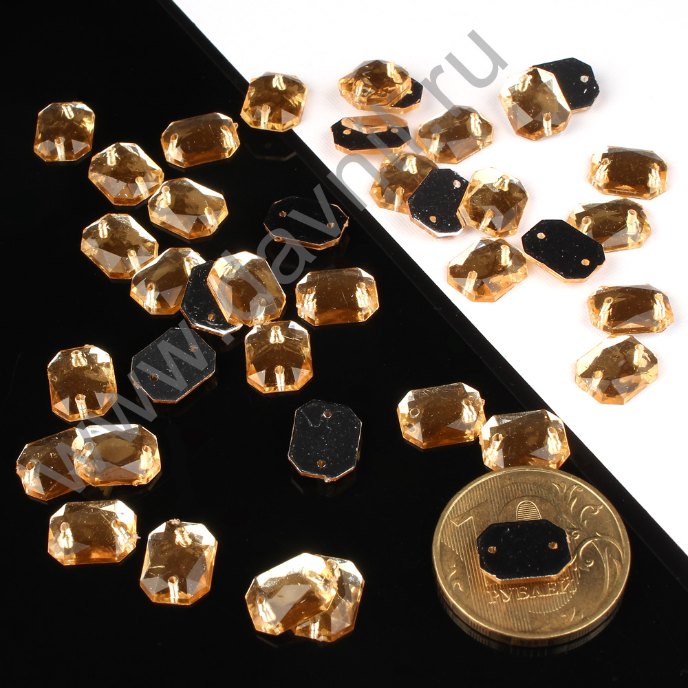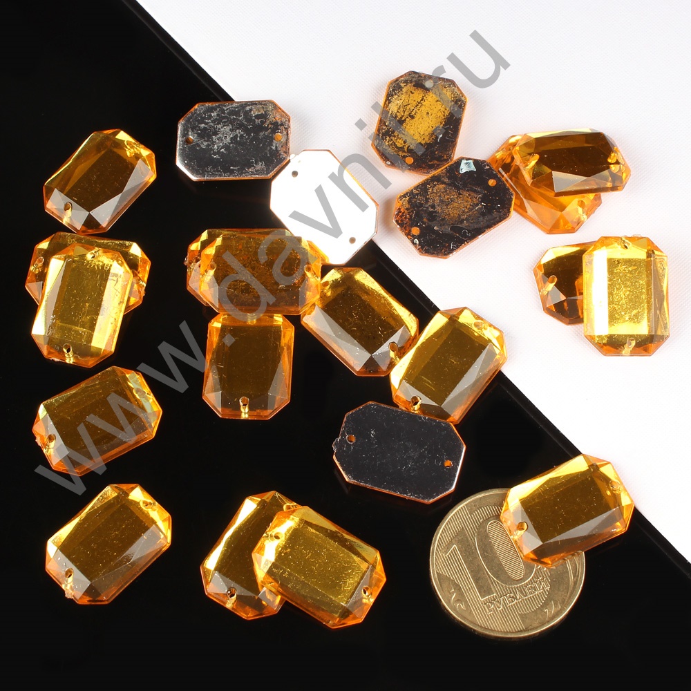 Стразы пришивные акрил "Многогранник" 8*10 мм 2000 шт яркое золото 20