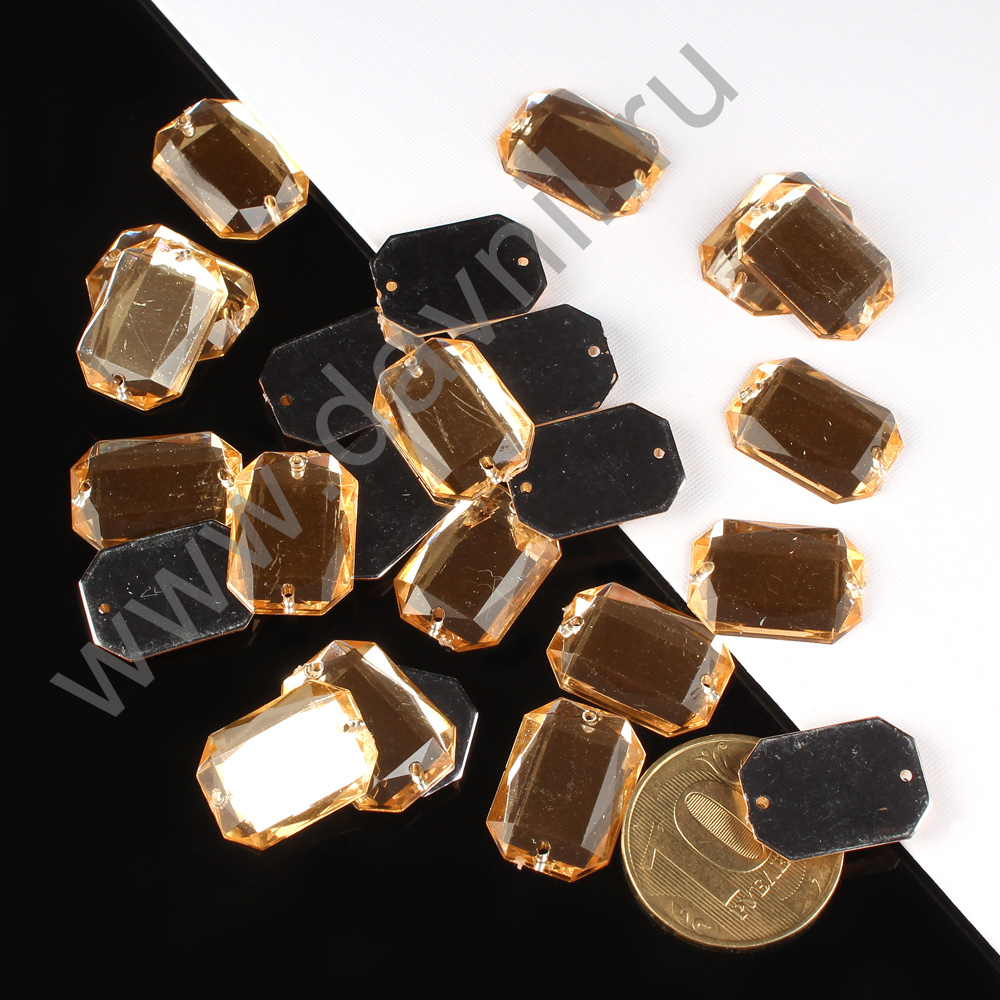 Стразы пришивные акрил "Многогранник" 13*18 мм 200 шт светлое золото 12