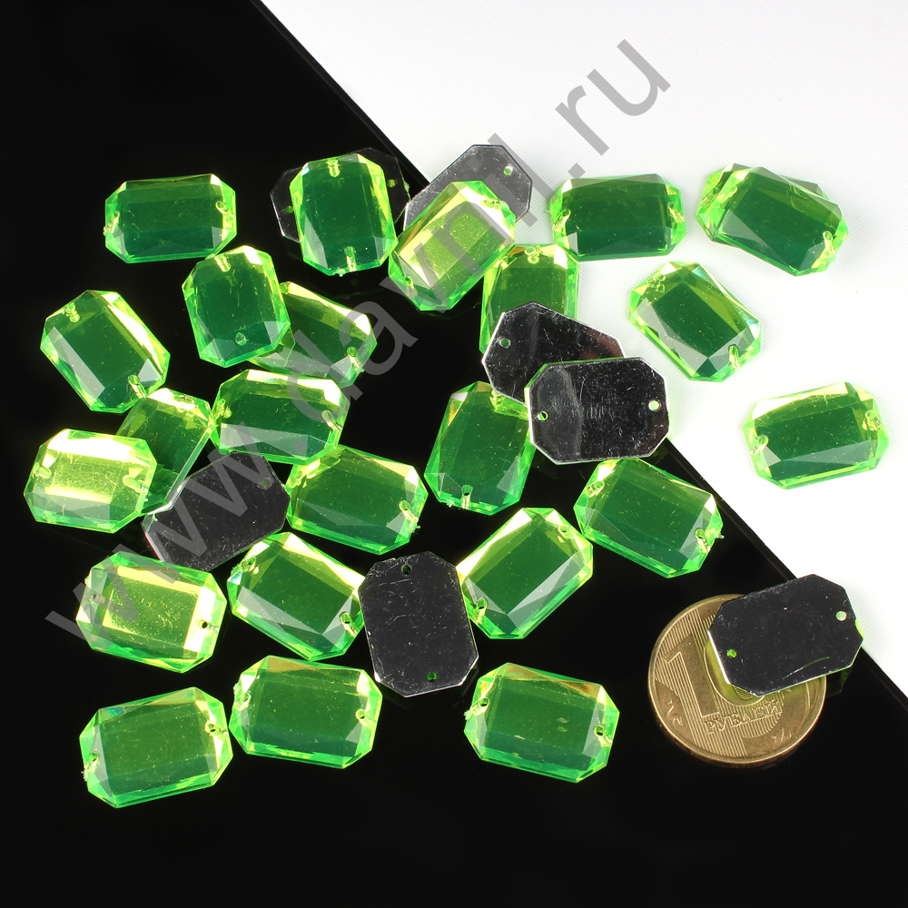 Стразы пришивные акрил "Многогранник" 13*18 мм 200 шт салатовые 33