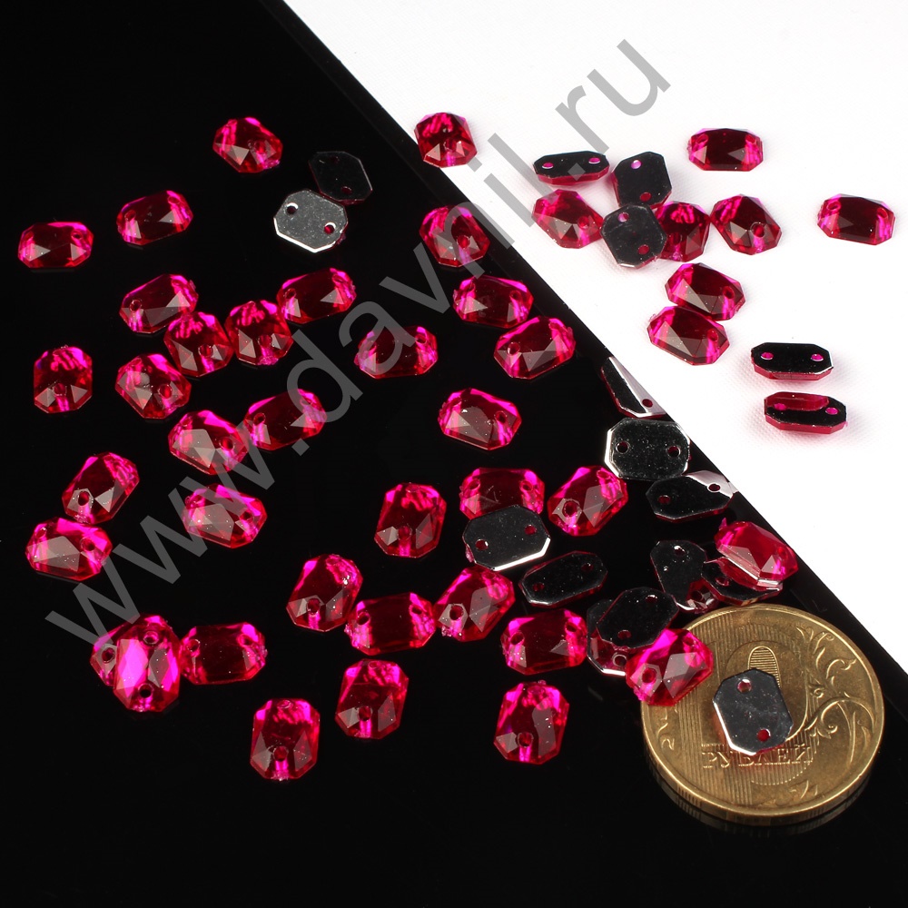 Стразы пришивные акрил "Многогранник" 18*27 мм 200 шт фуксия 19