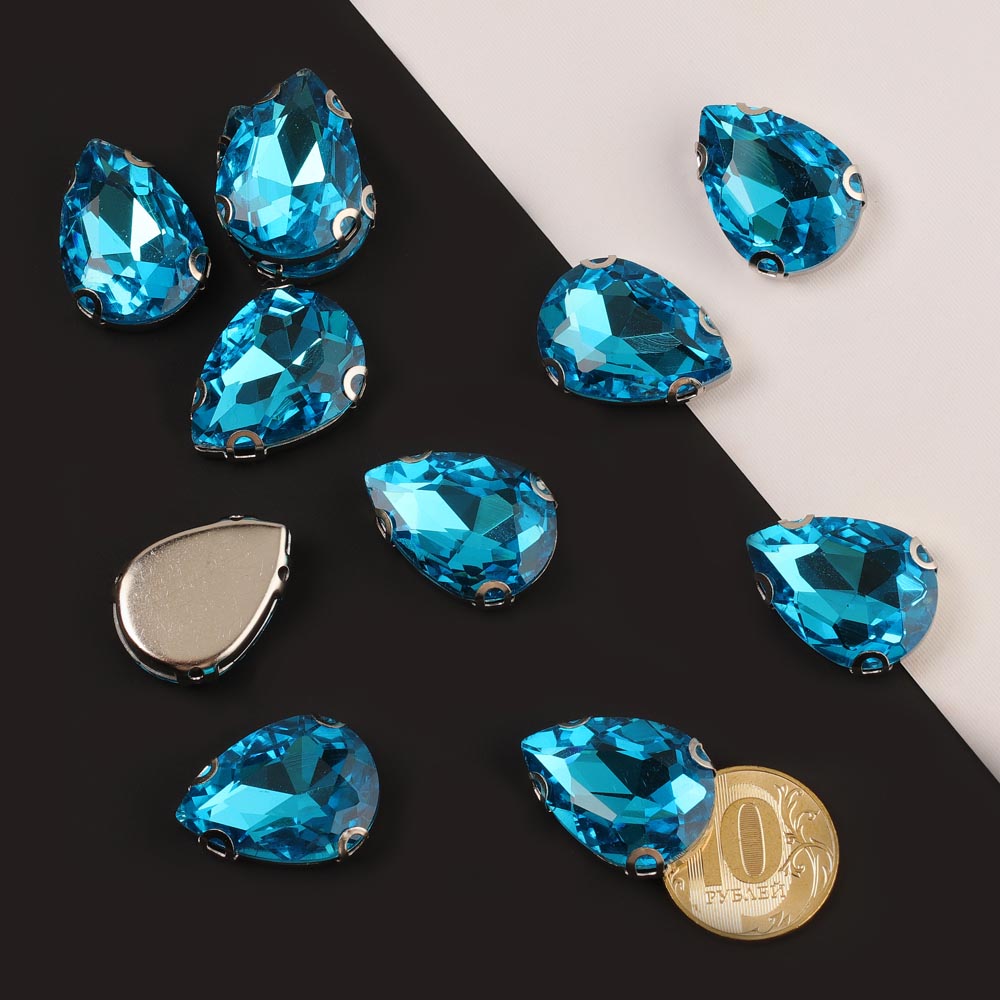 Стразы пришивные стекло капля 16*25 мм 15 шт бирюзовые 23