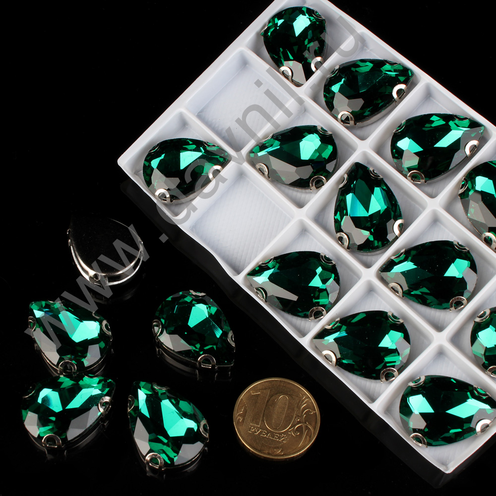 Стразы пришивные стекло капля 16*25 мм 15 шт серебро 29