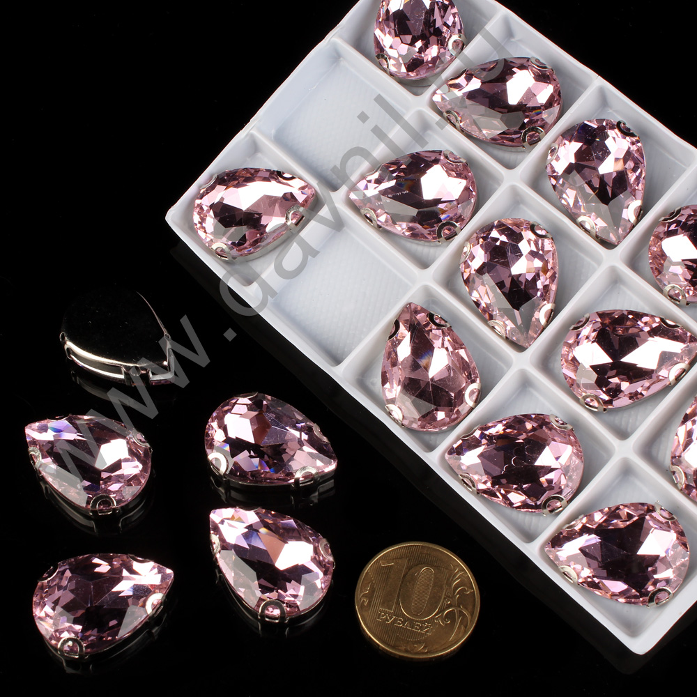 Стразы пришивные стекло капля 16*25 мм 15 шт розовые 7