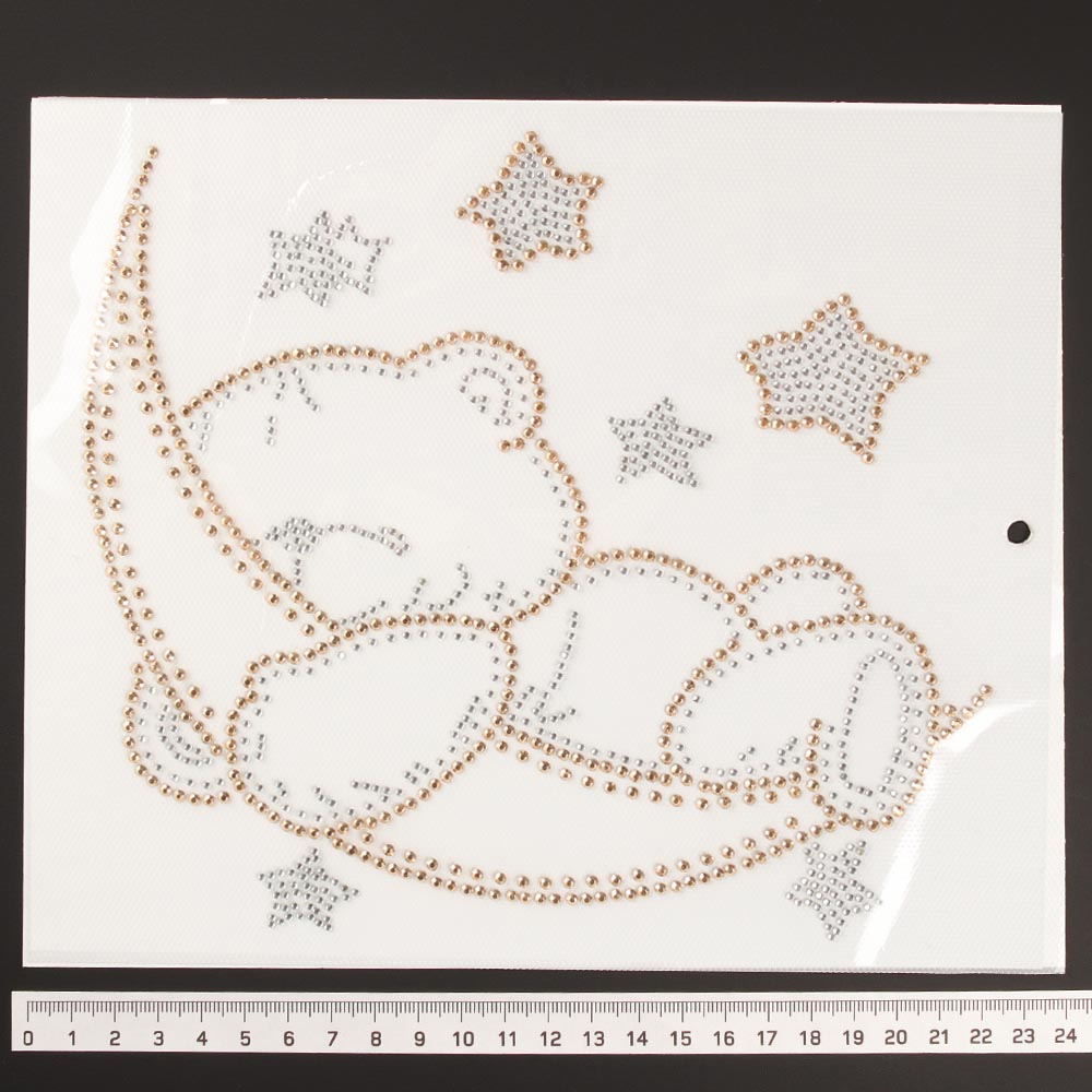 Термоапликация из страз рис.3058 Мишка на луне серебро золото