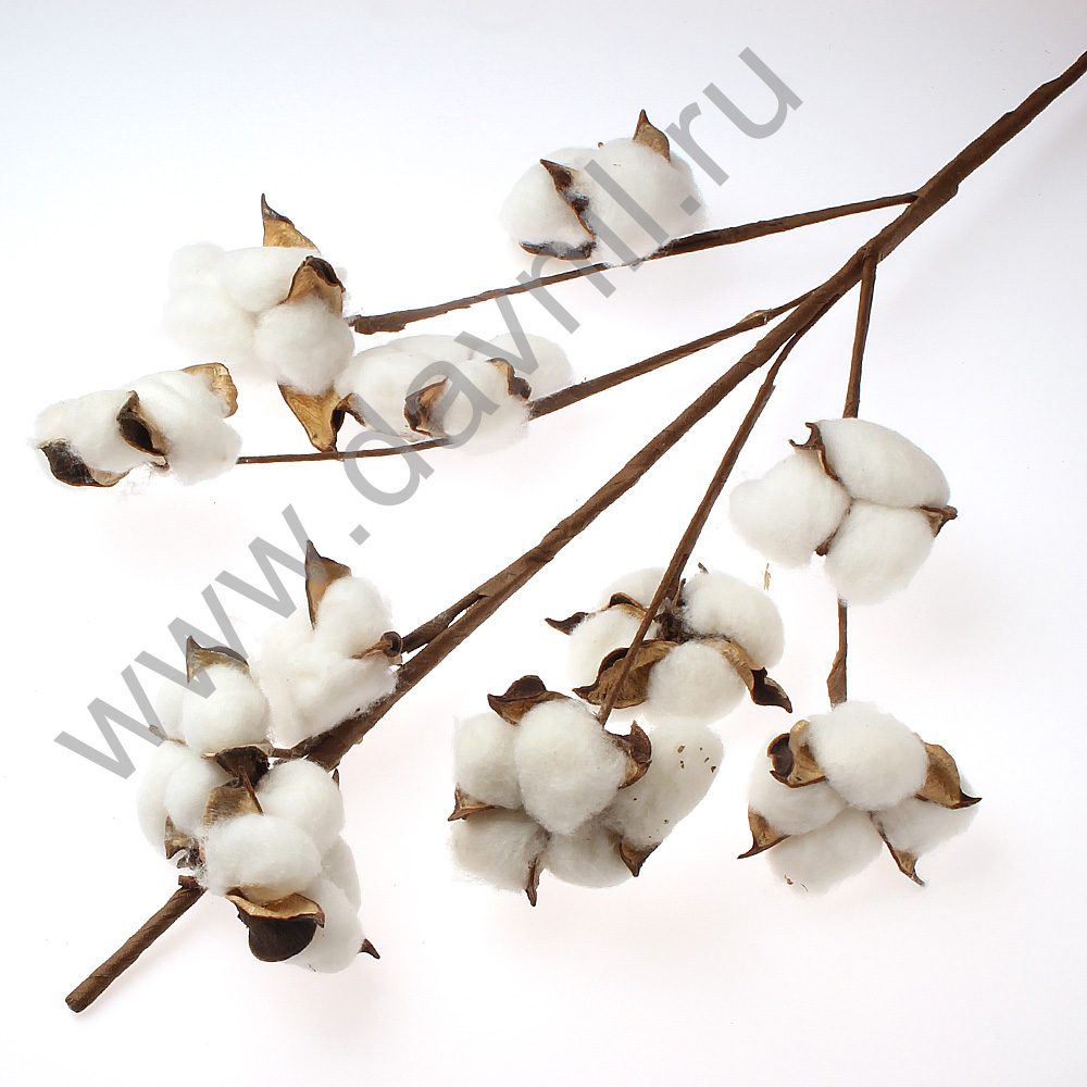 Ветка декоративная с хлопком 11 головок*55 см