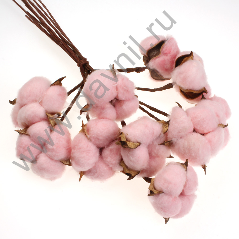 Ветка хлопок одинарный 30 см 10 шт. розовый 41