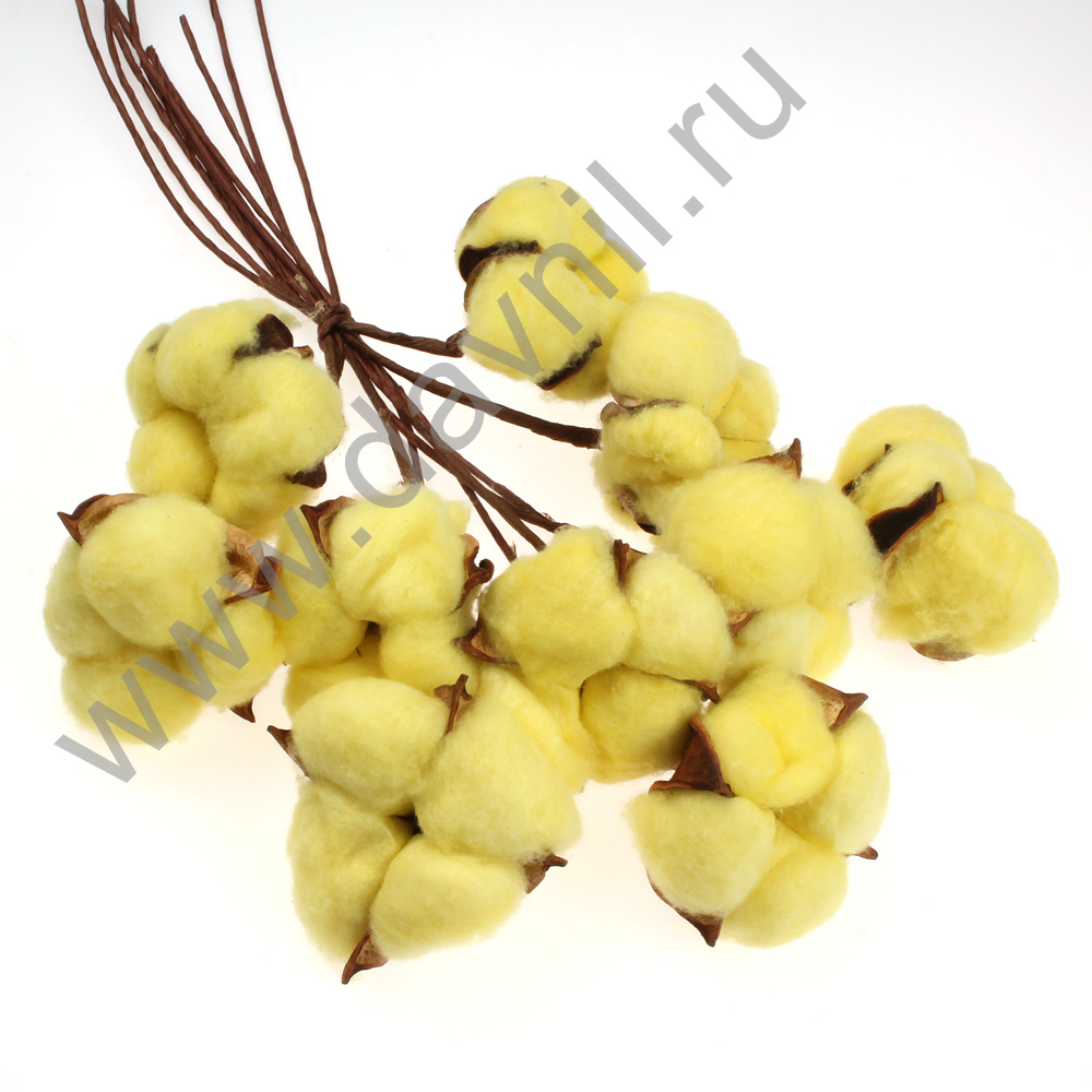 Ветка хлопок одинарный 30 см 10 шт. желтый 10