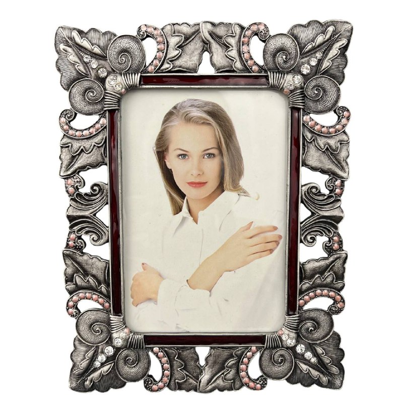Фоторамка металлическая 10*15 тёмное серебро со стразами