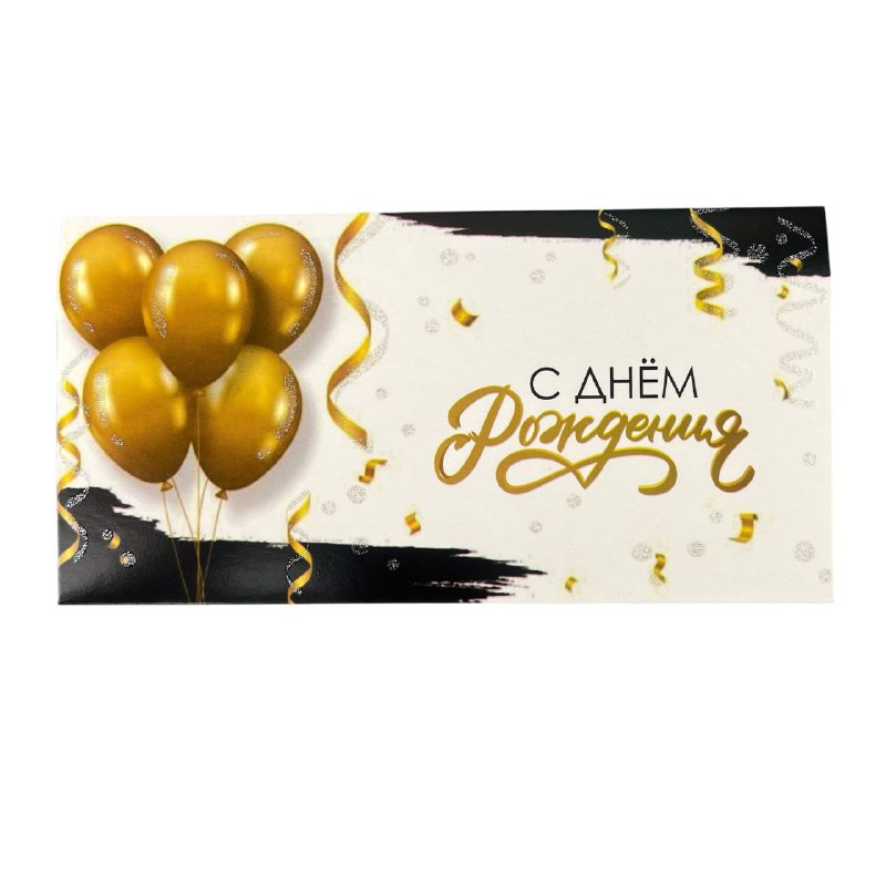 Бумажный конверт "С днём рождения" золотые шары 10 шт 5К-1794