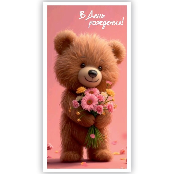 Бумажный конверт "В день рождения" медвежонок 10 шт 5КХ -198