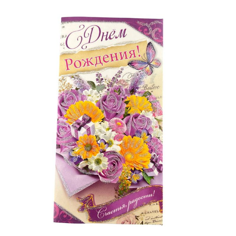 Бумажный конверт "С днём рождения" цветы 10 шт 5К-1589