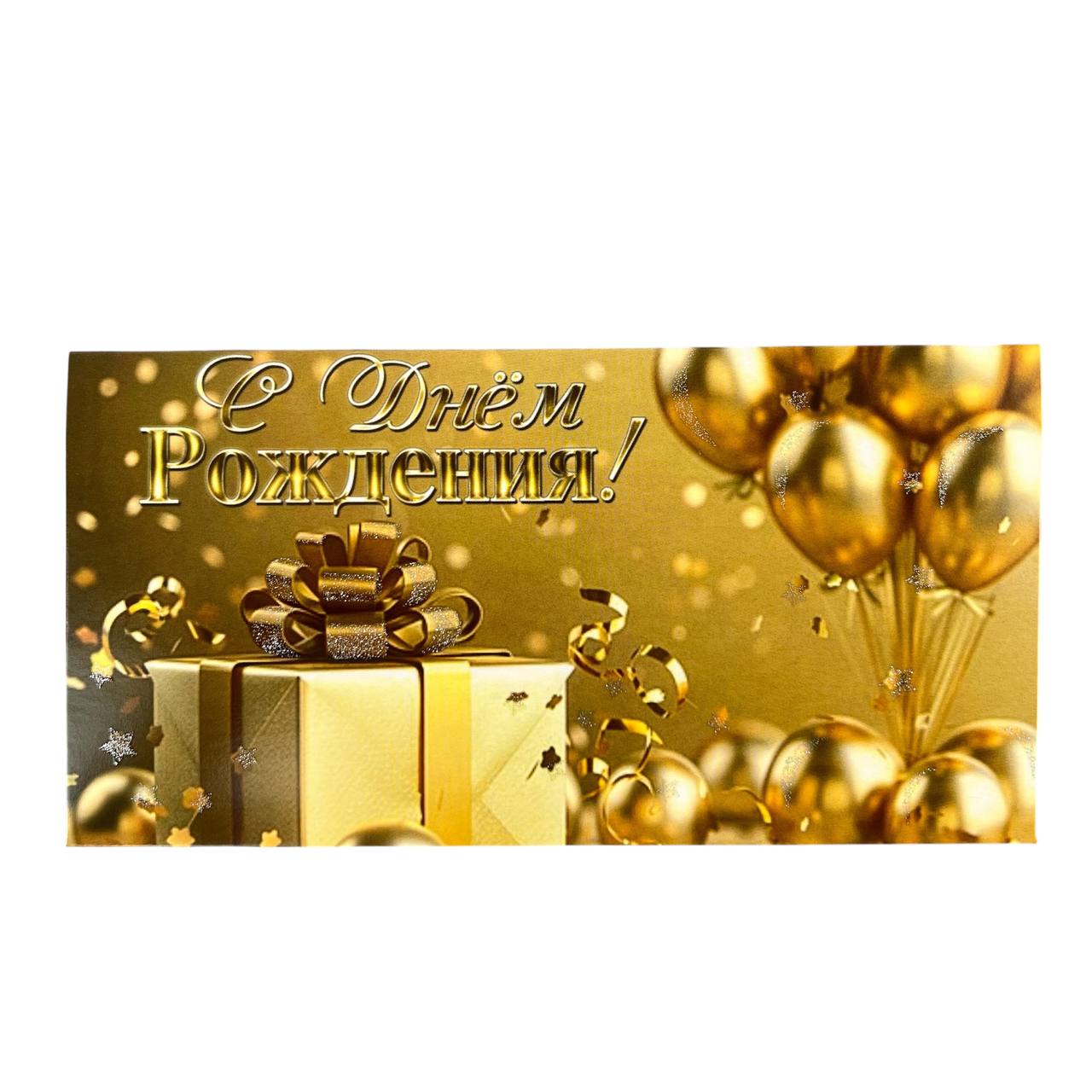 Конверт бумажный "С днём рождения" золотые шары 10 шт 5К-1773