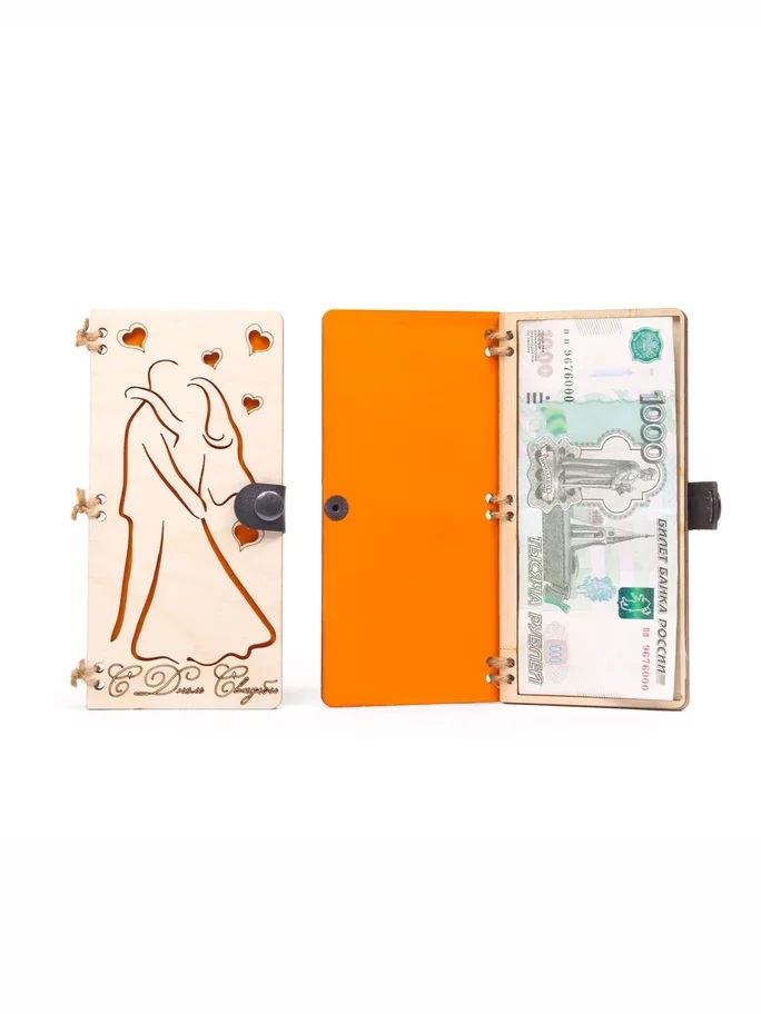 Конверт деревянный "С Днём Свадьбы (Силуэт) " оранжевый