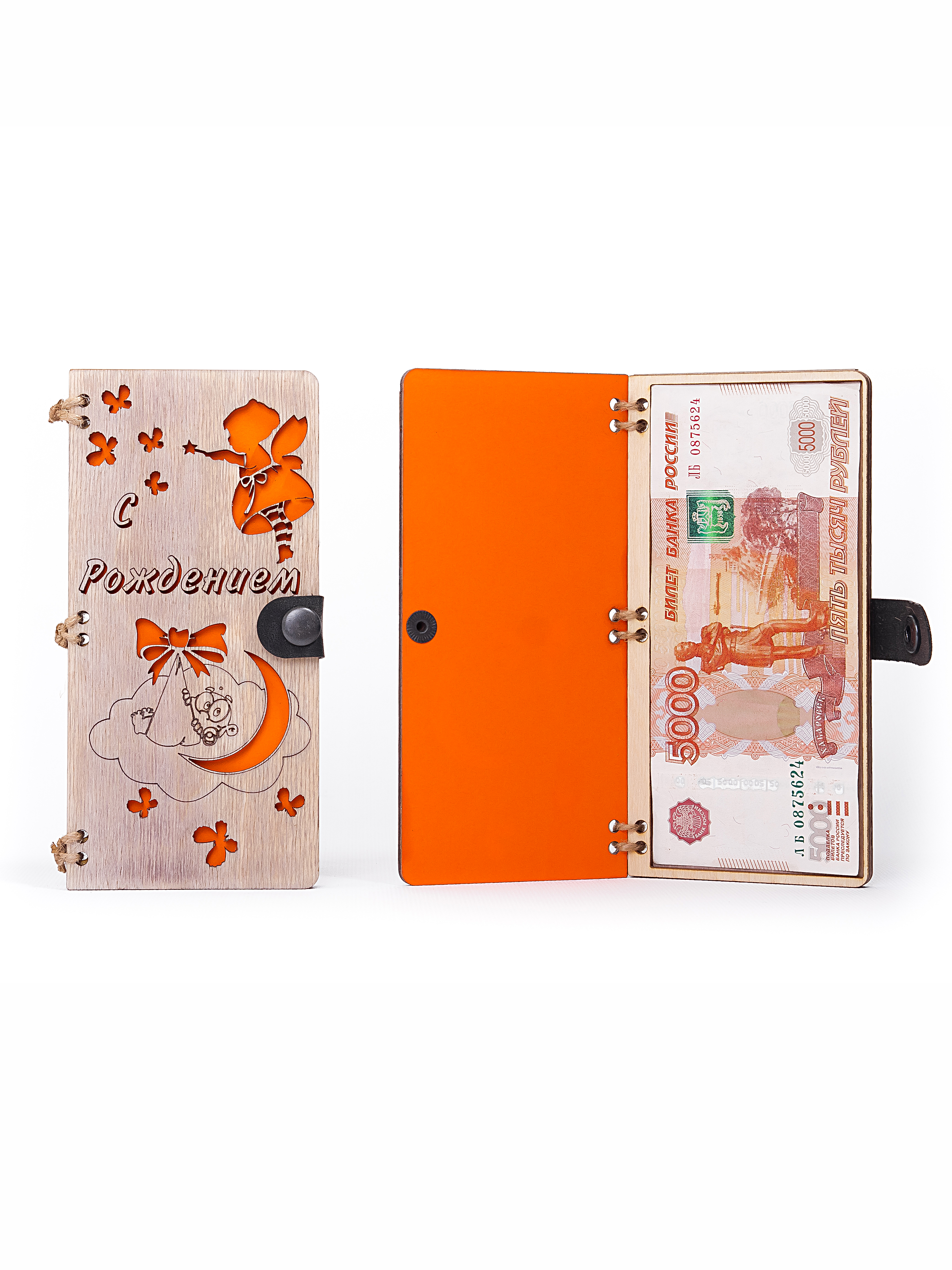 Конверт деревянный "С рождением" оранжевая