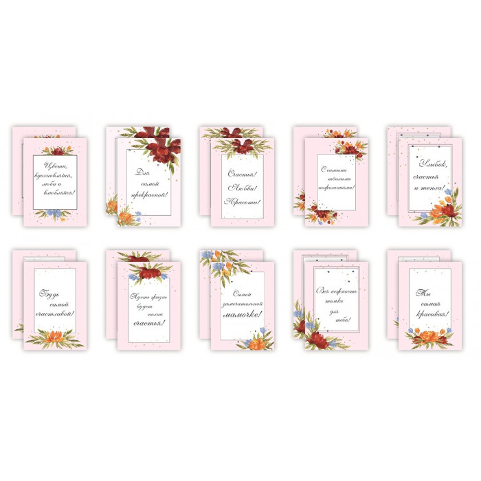 Набор мини открыток 5*7 см "Подарок" с цветами 20 шт