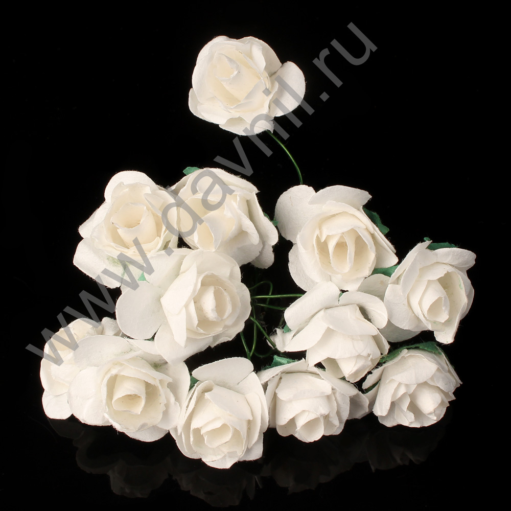 Бутоньерка бумажная "Роза" 12 шт. белая