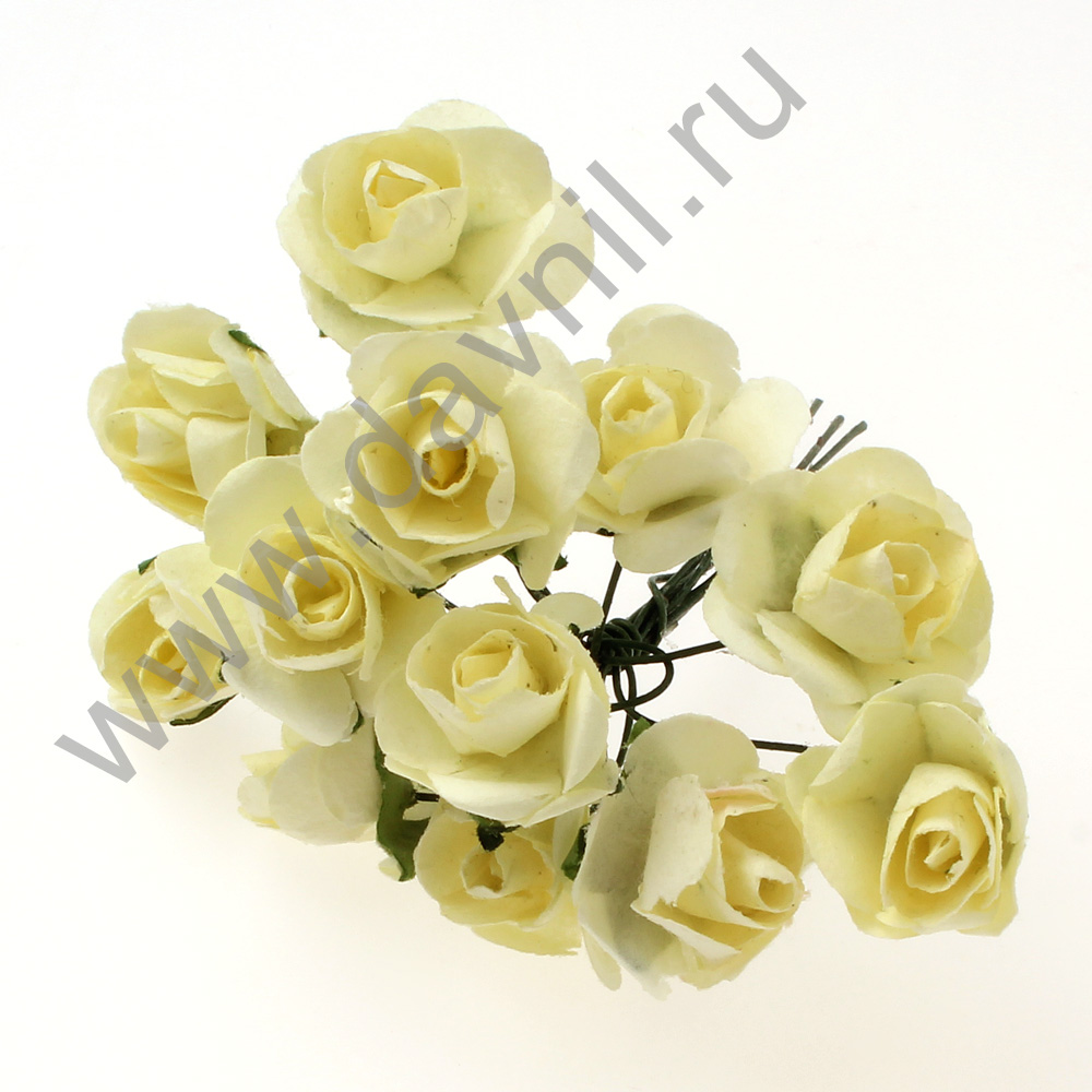 Бутоньерка бумажная "Роза" 12 шт. айвори 2