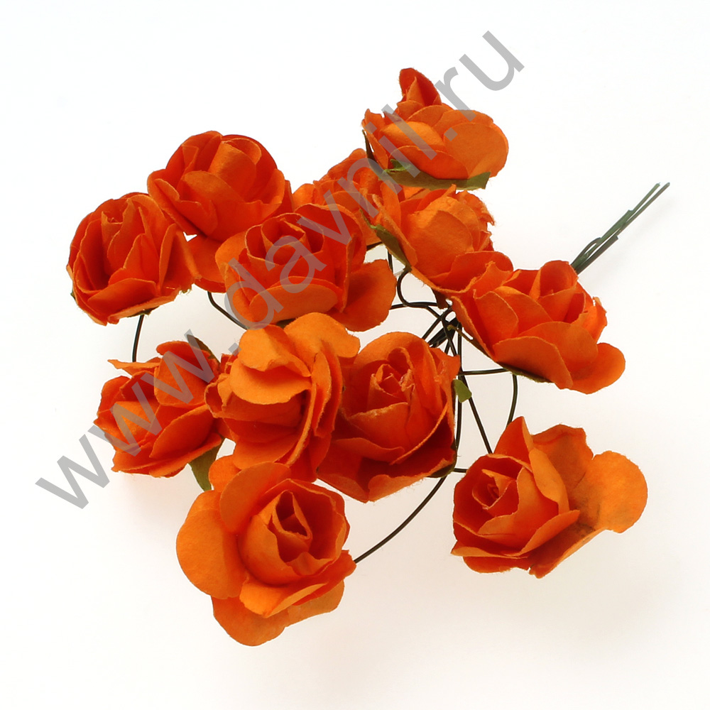 Бутоньерка бумажная "Роза" 12 шт. оранжевая 10