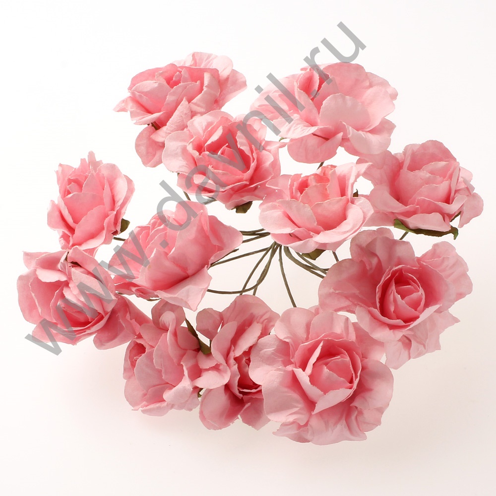 Бутоньерка "Открытая роза" 12 шт. розовая