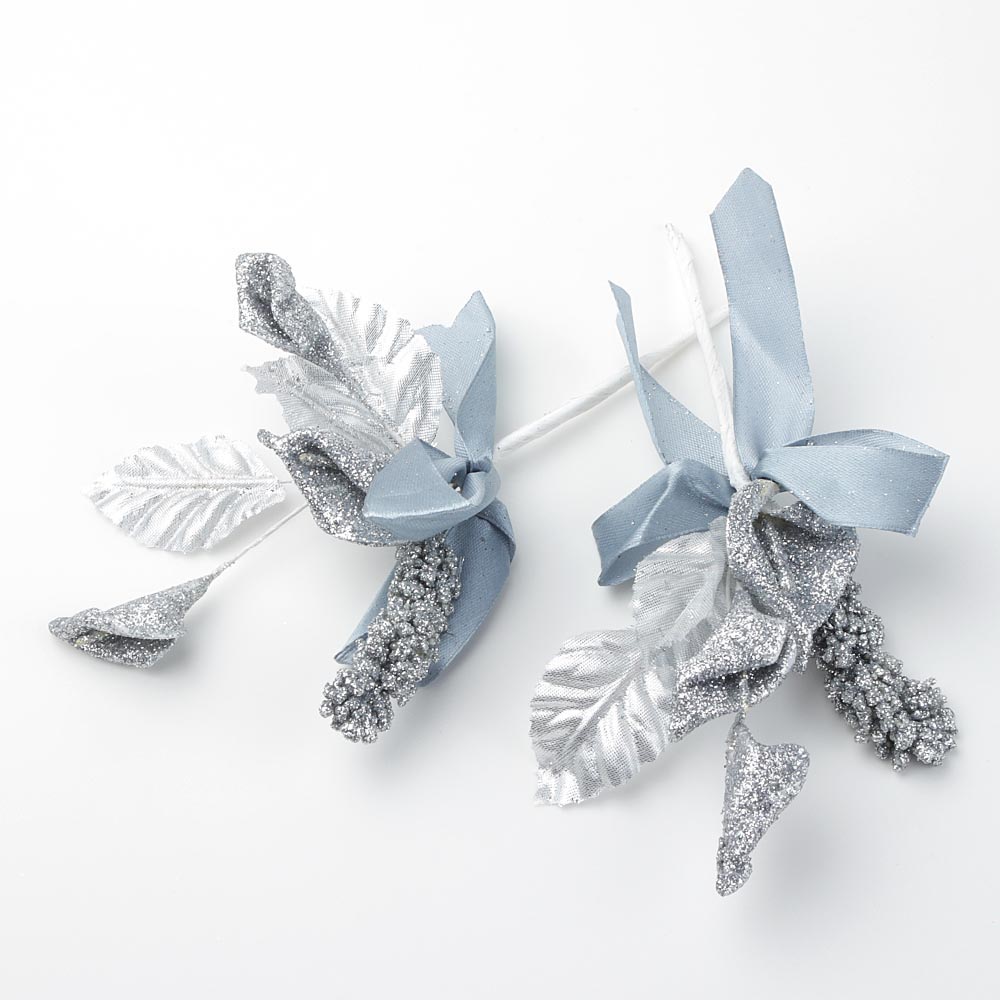 Бутоньерка с блестками "Калла с бантиком" 12 шт серебро