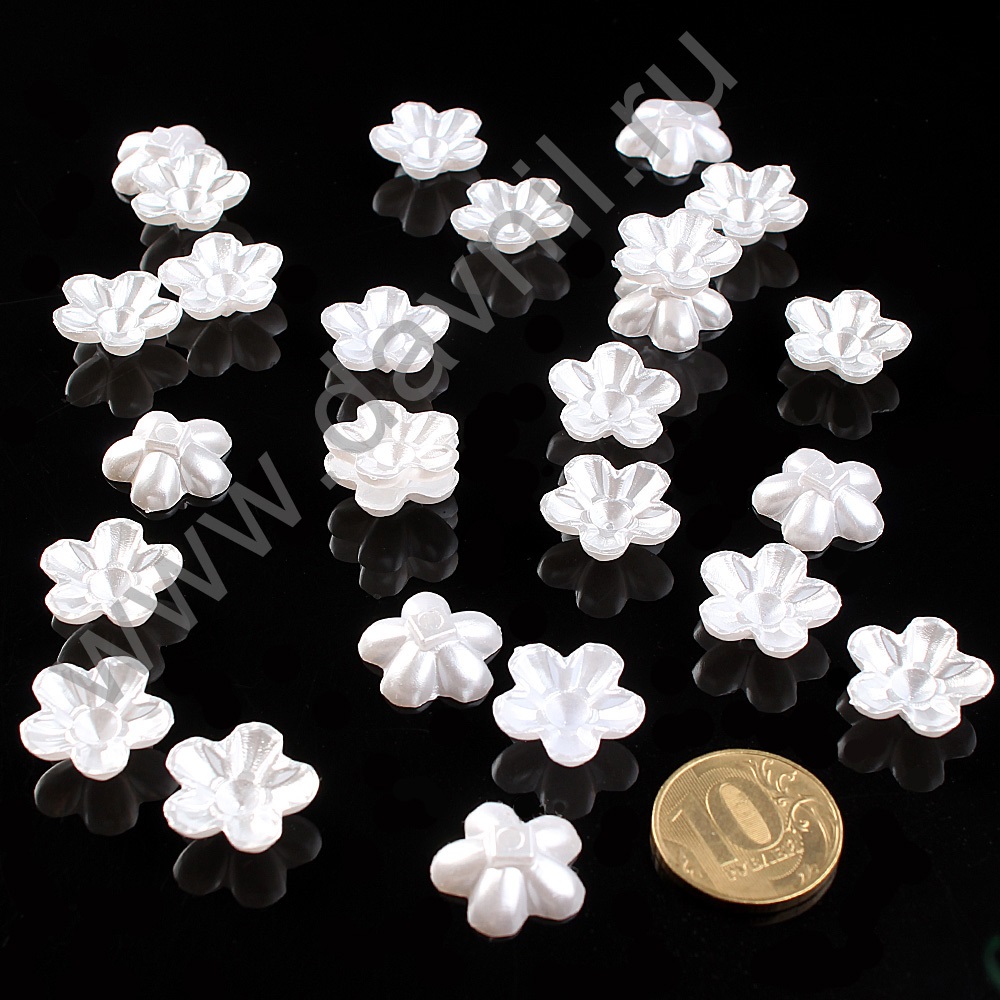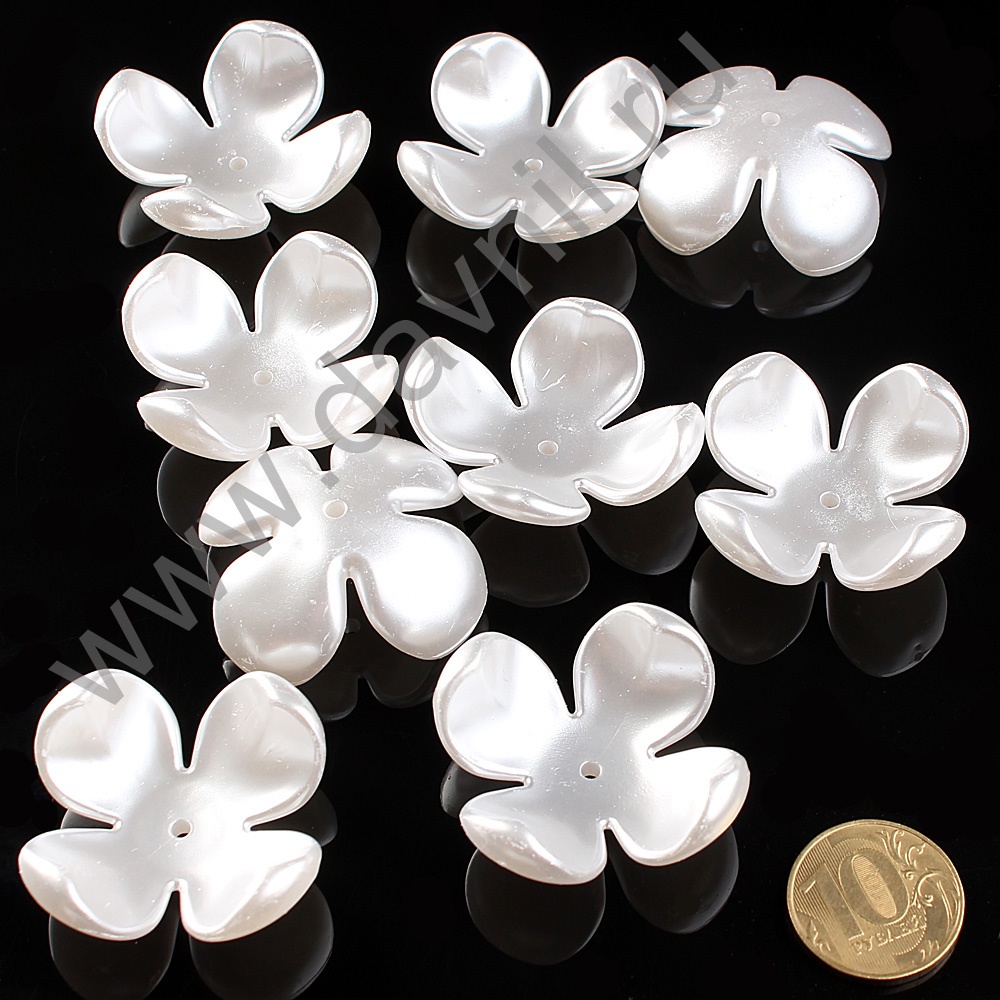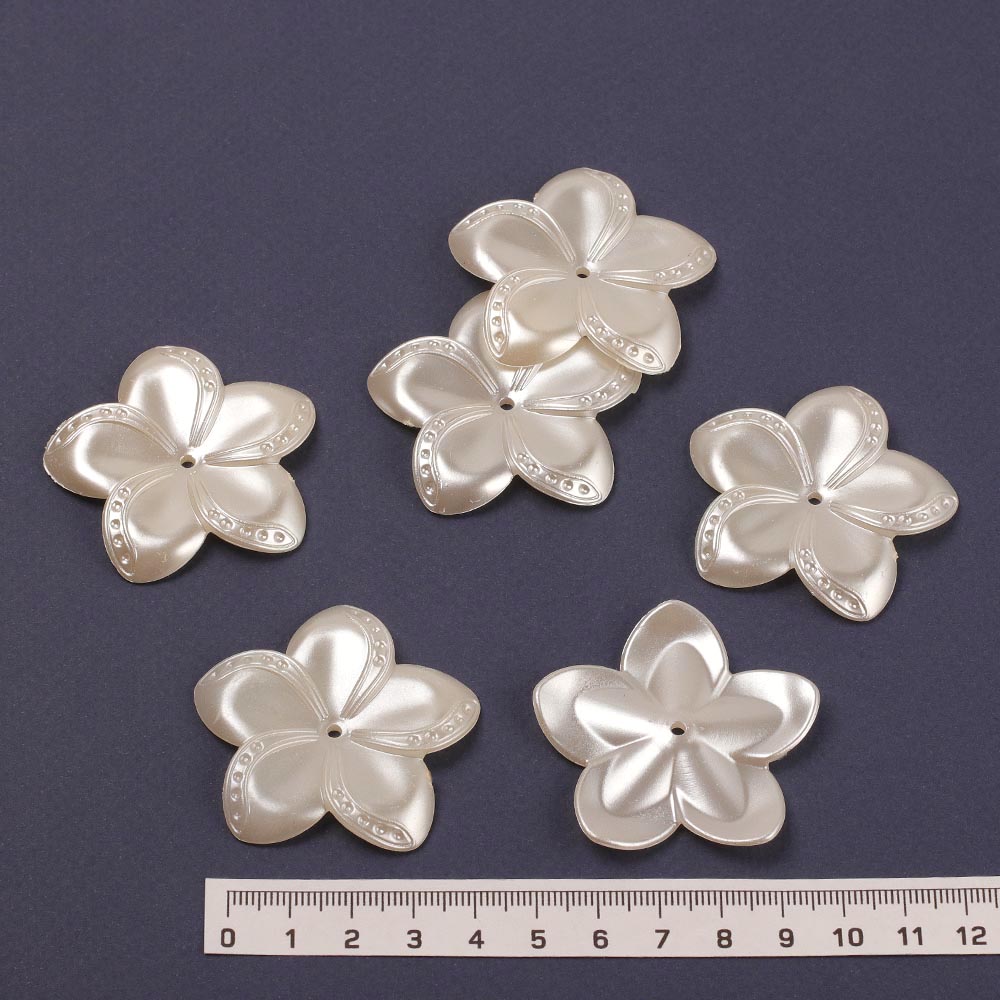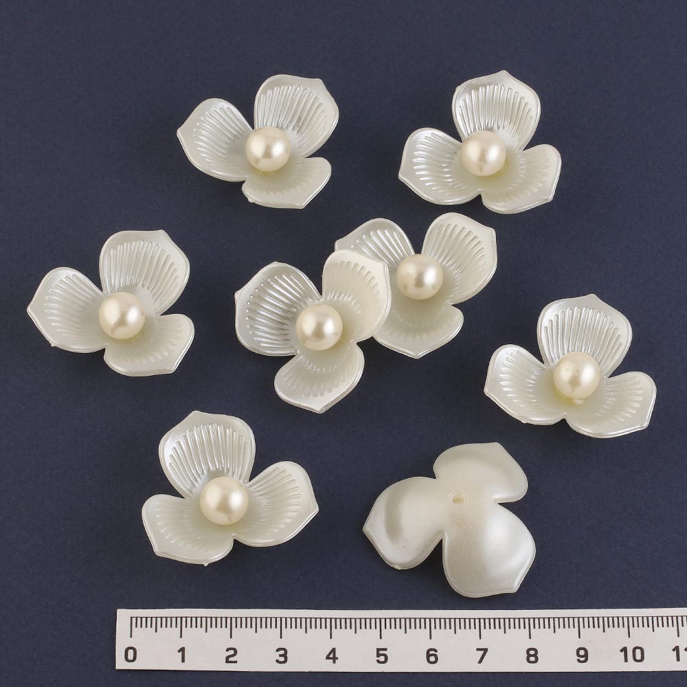 Кабошон цветок с жемчугом 1523 30*30 мм 10 шт айвори