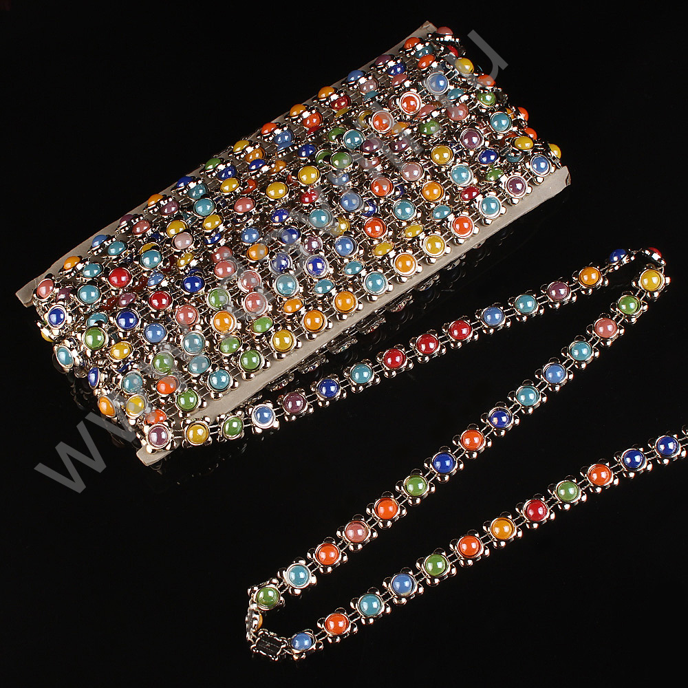 Кабошоны 1 м на нити "Ромб" с цветными бусинами золото