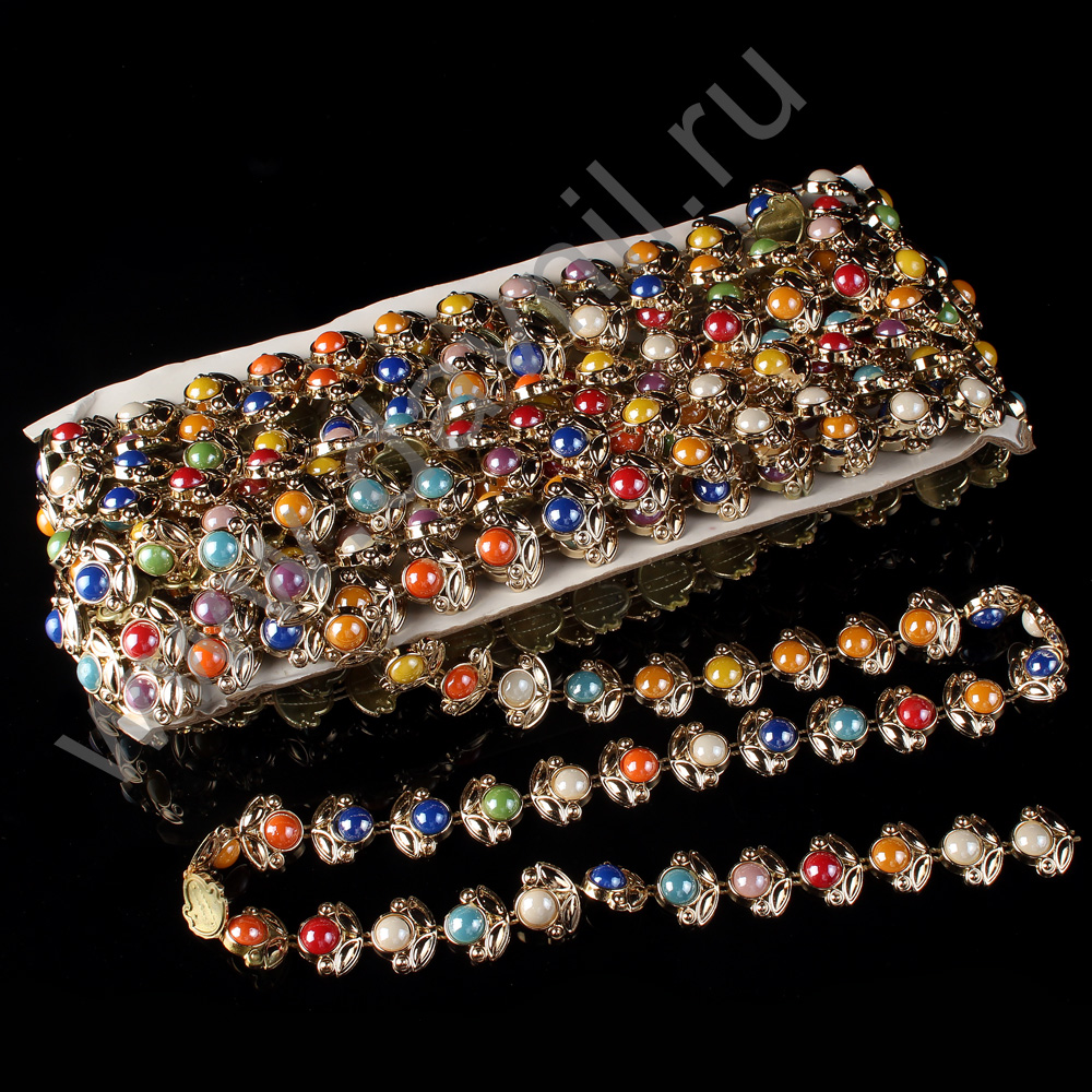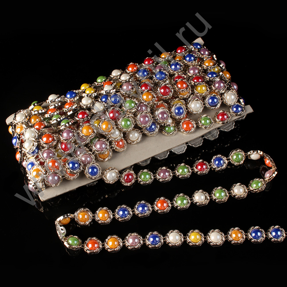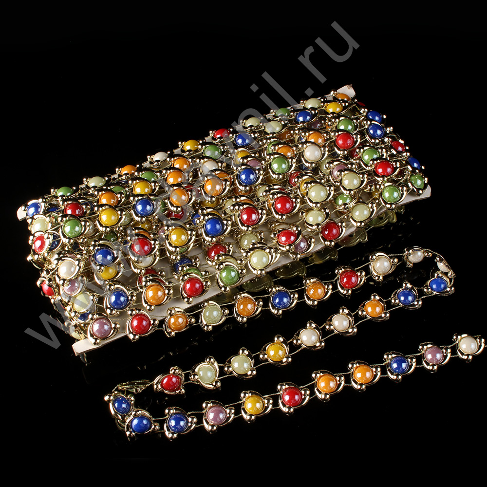 Кабошоны 10 ярдов на нити "Овал" с цветными бусинами золото
