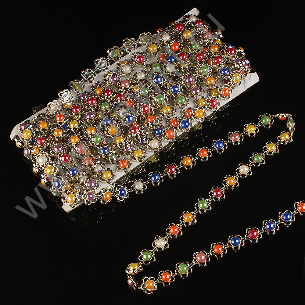 Кабошоны 10 ярдов на нити "Цветок" с цветными бусинами золото