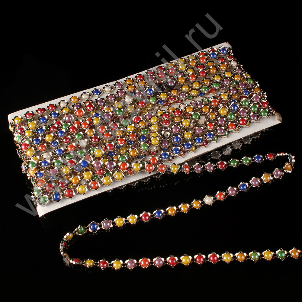 Кабошоны 10 ярдов на нити "Ромб" с цветными бусинами золото