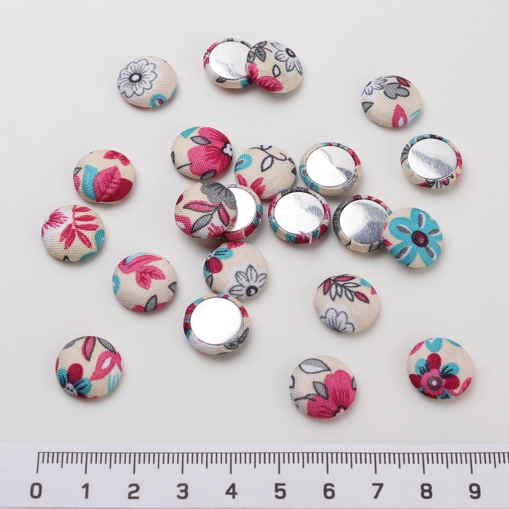 Кабошоны обтянутые цветной тканью 14 мм 40 шт бело-розовые