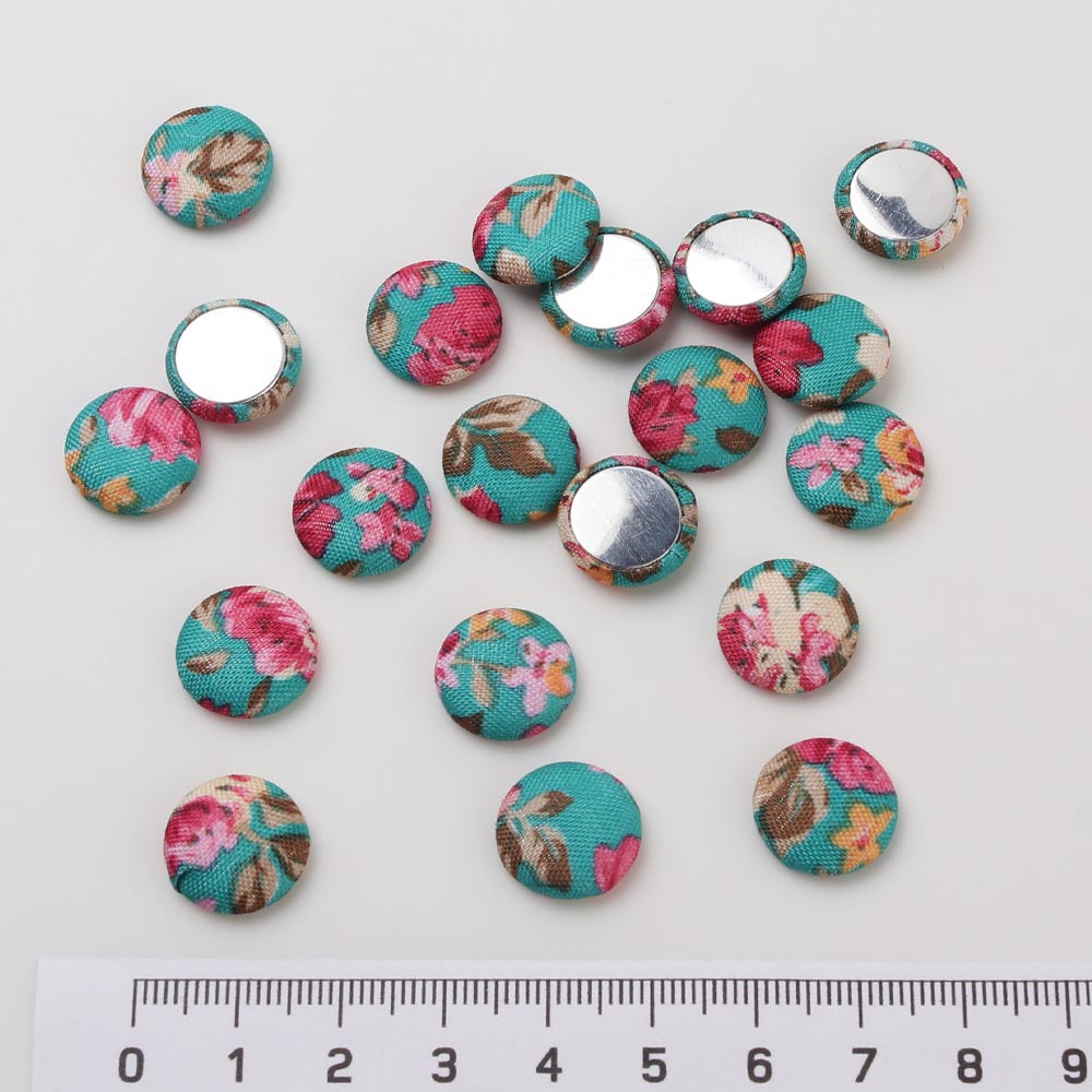 Кабошоны обтянутые цветной тканью 14 мм 40 шт бирюзово-розовые